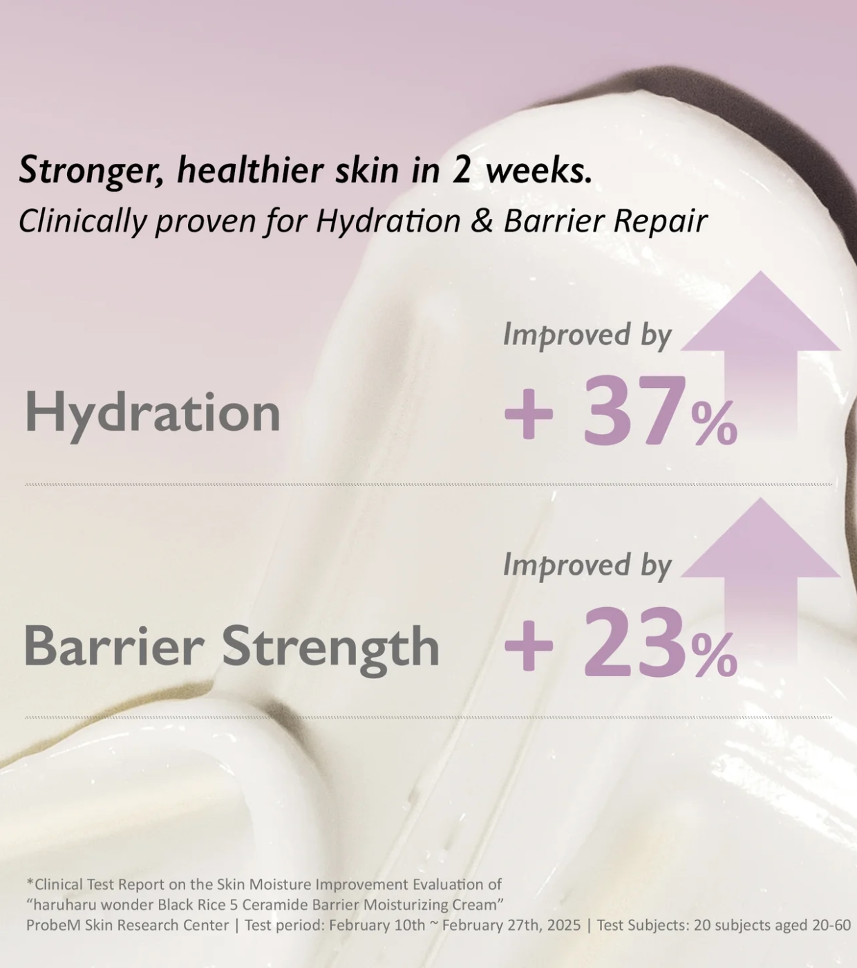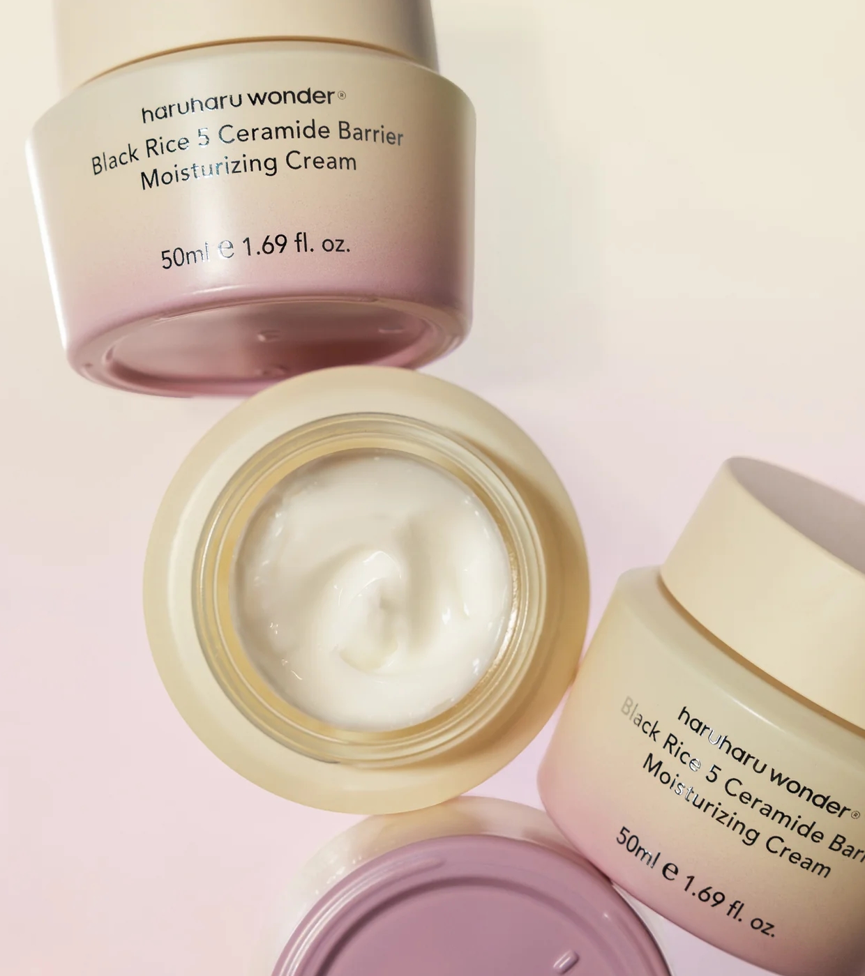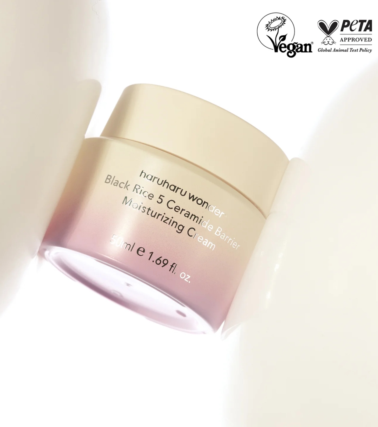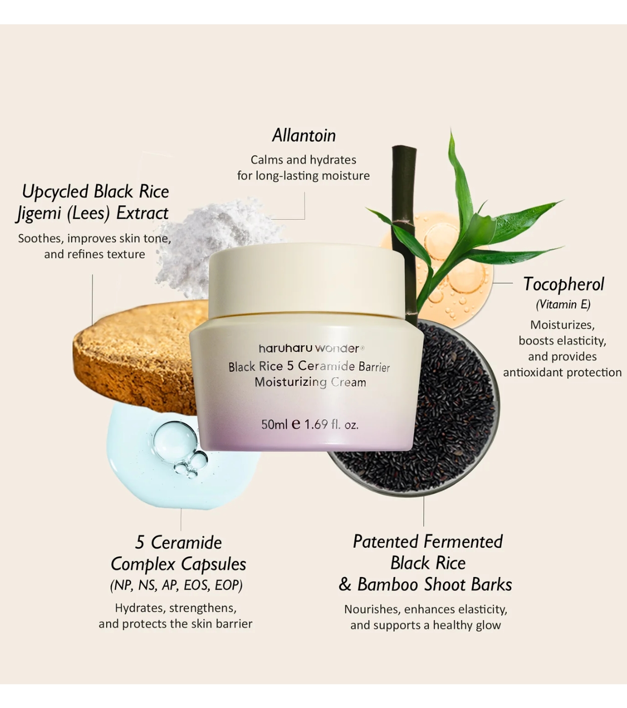 Enjoy luxurious facial care with this Black Rice 5 Ceramide Barrier moisturizing face cream from Haruharu Wonder enriched with ceramide capsules that strengthen the skin barrier and provide intense and long-lasting hydration.