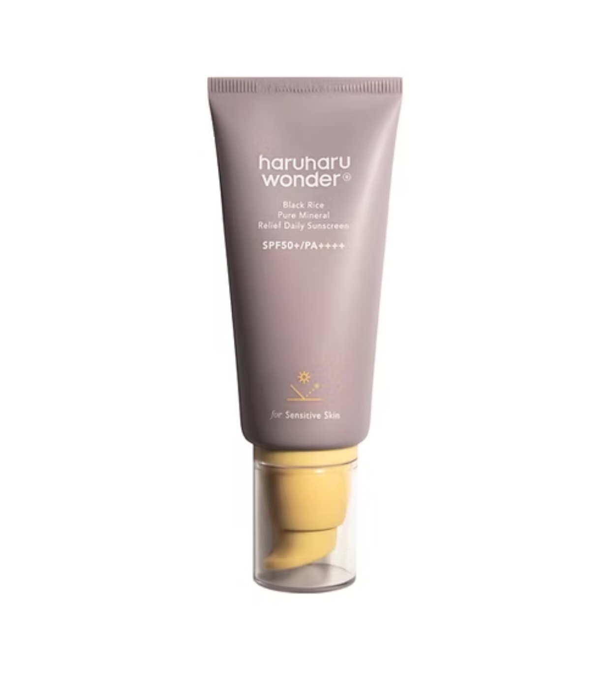 Haruharu Wonder Black Rice Pure Mineral Relief Daily Sunscreen is a gentle and effective daily sunscreen that provides complete protection against harmful UV rays with SPF 50+ and PA++++.
