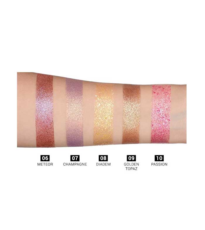 Loose pigment HD, super pigmented, bright finish and diamond effect.