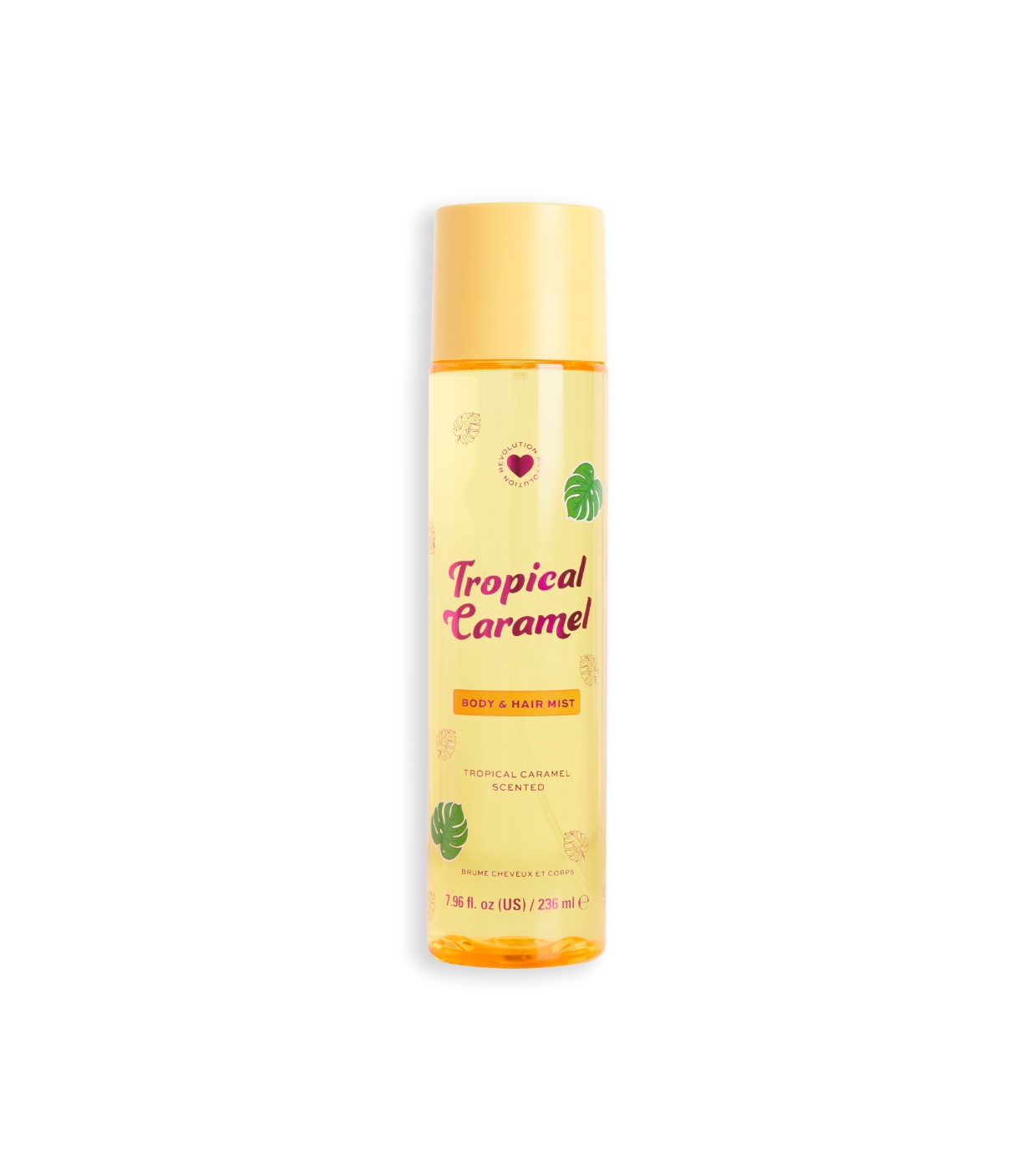 I Heart Revolution Tropical Caramel Hair and Body Mist is perfect for spraying on body and hair.