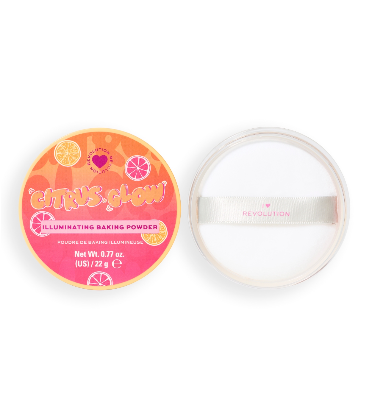 Bake and brighten your face with Citrus Glow Brightening Citrus Glow Brightening Powder , a loose powder that sets your makeup while adding a subtle glow.
