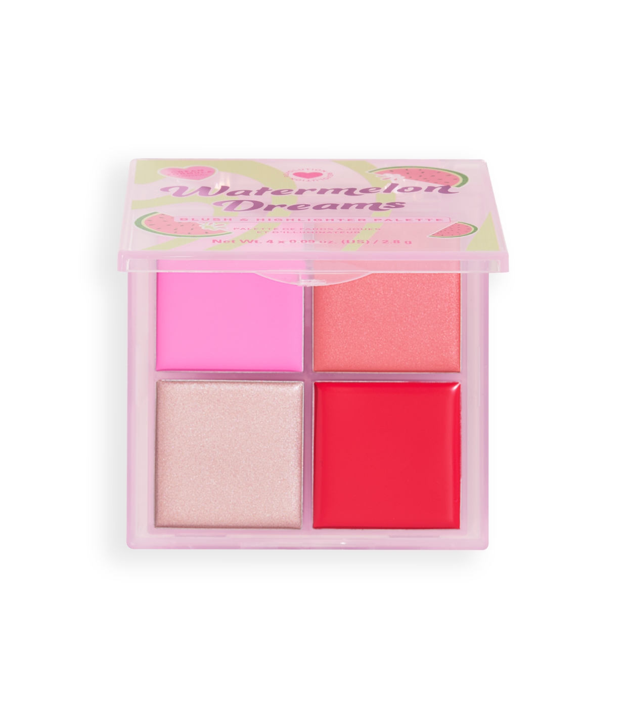 Get all the juicy, fruity vibes with the I Heart Revolution I Heart Revolution Face Palette, the ultimate in color and glow, featuring two blush colors and a cream highlighter.
