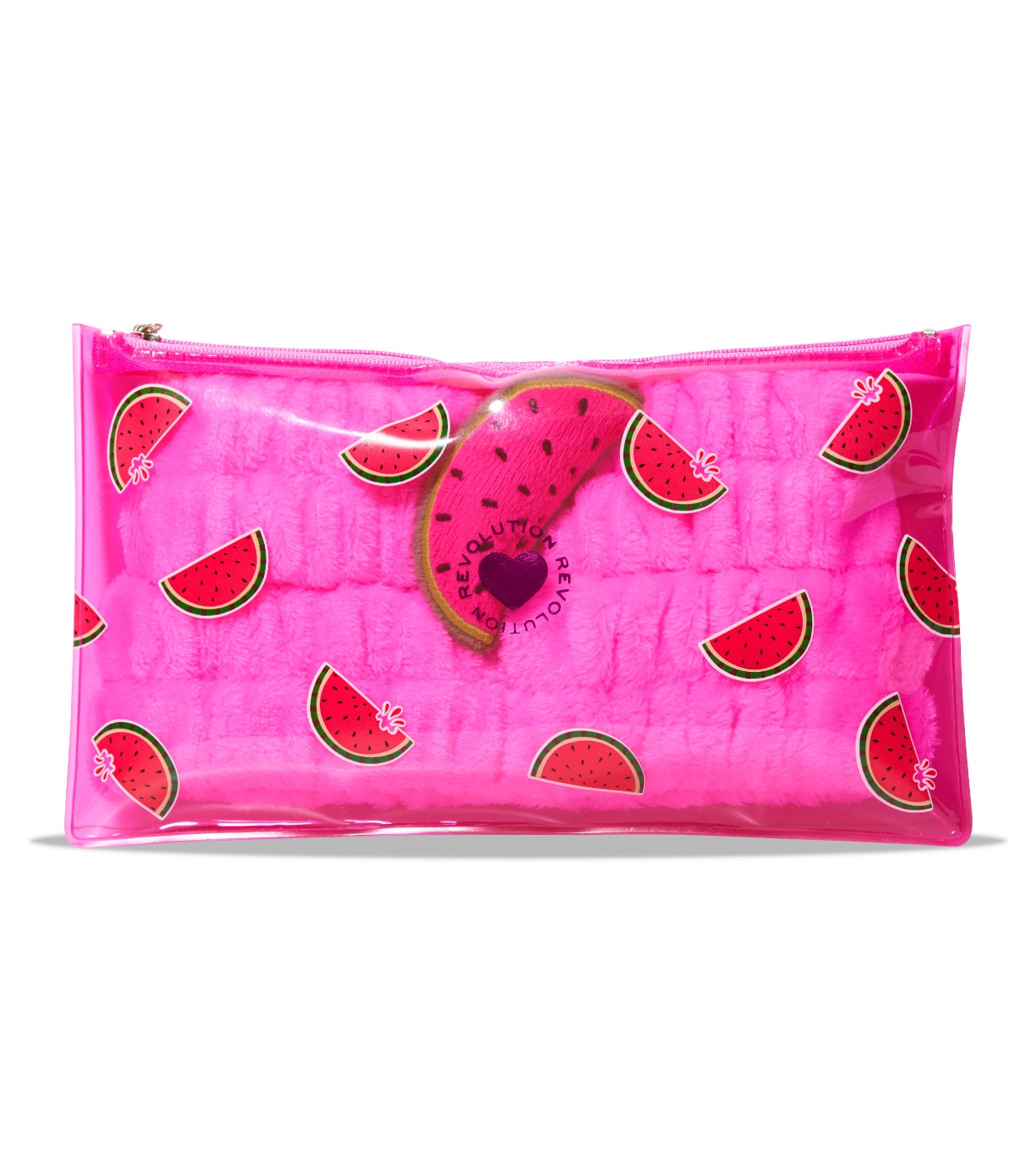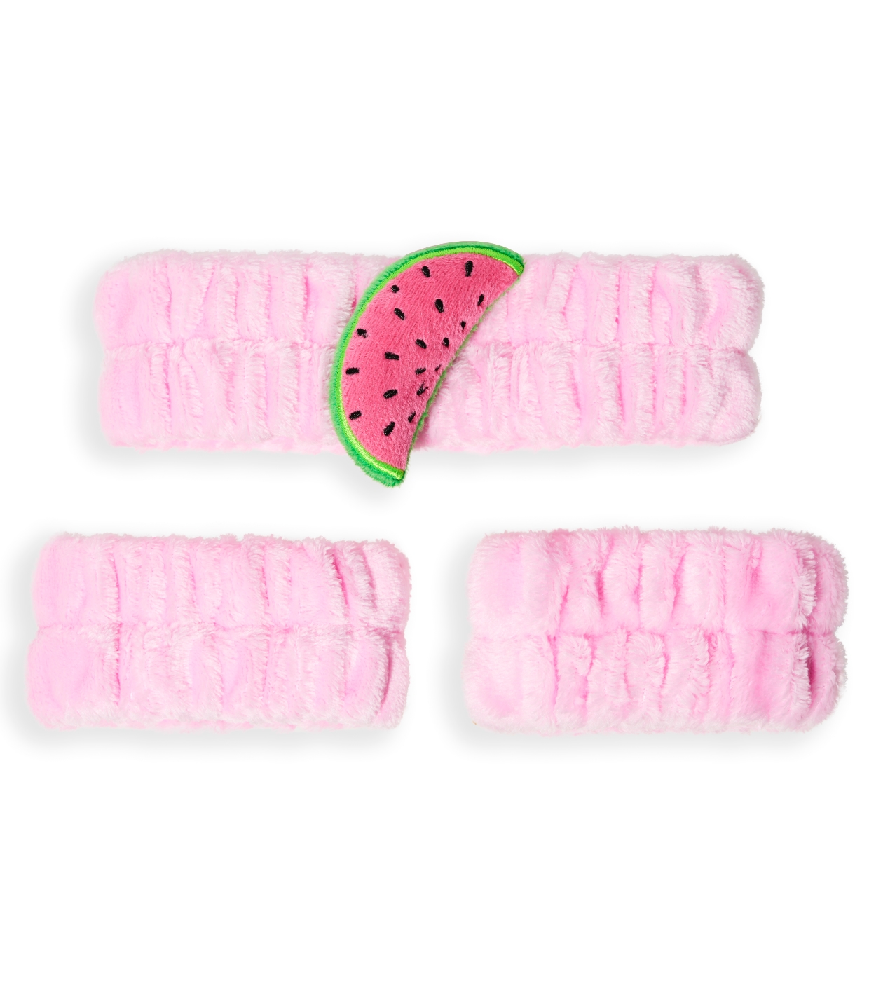Your skincare routine will now be more comfortable and fun with this I Heart Revolution Headband + Wristband Set featuring a super soft watermelon headband and the drip-free wristband set.