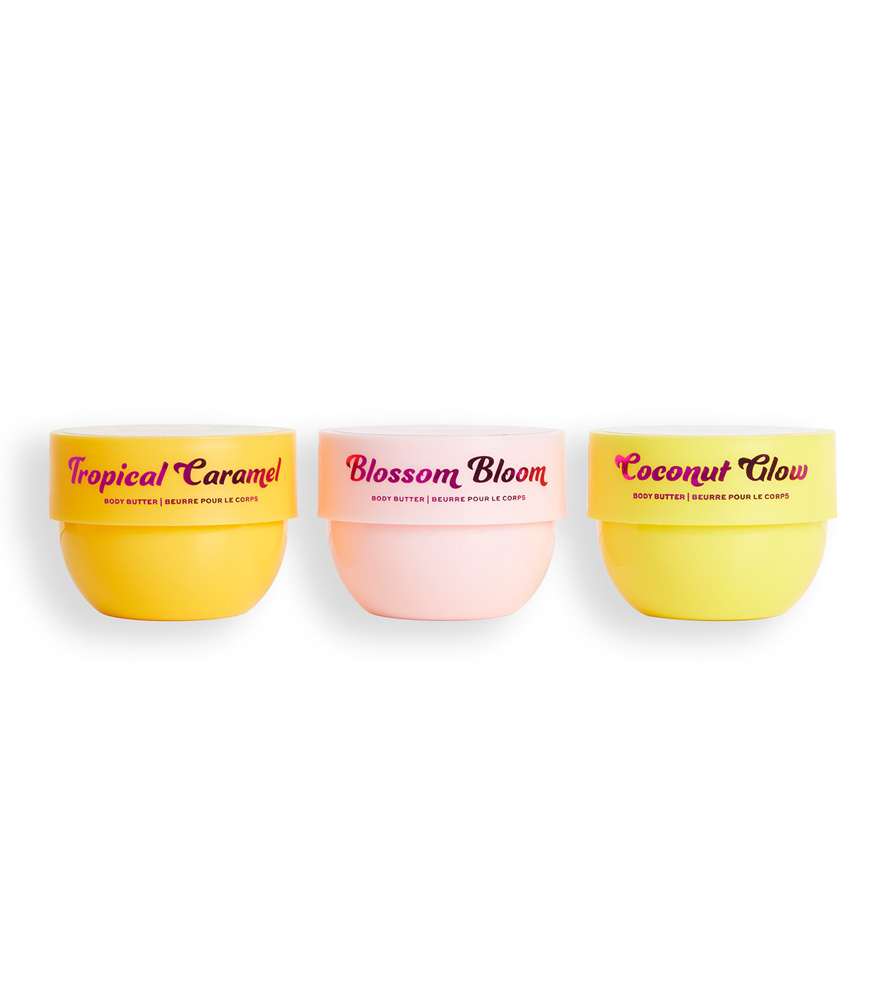 TROPICAL CARAMEL (INGREDIENTS): AQUA (WATER, EAU), CAPRYLIC/CAPRIC TRIGLYCERIDE, CETEARYL ALCOHOL,GLYCERIN, HELIANTHUS ANNUUS (SUNFLOWER) SEED OIL, BUTYROSPERMUM PARKII (SHEA) BUTTER, PALMITIC ACID, PEG-100 STEARATE, STEARIC ACID, PARFUM (FRAGRANCE), GLYCERYL STEARATE, PHENOXYETHANOL, ACRYLATES COPOLYMER, TRIETHANOLAMINE, POLYSORBATE 60, CARBOMER, CETEARETH-25, ETHYLHEXYLGLYCERIN, DISODIUM EDTA, COCOS NUCIFERA (COCONUT) OIL, CAFFEINE, CYCLODEXTRIN, COCOS NUCIFERA (COCONUT) FRUIT EXTRACT, BENZYL ALCOHOL, BENZYL SALICYLATE, COUMARIN, LIMONENE, CI 19140 (YELLOW 5), CI 17200 (RED 33). COCONUT GLOW (INGREDIENTS): AQUA (WATER, EAU), CAPRYLIC/CAPRIC TRIGLYCERIDE, CETEARYL ALCOHOL, GLYCERIN, HELIANTHUS ANNUUS (SUNFLOWER) SEED OIL, BUTYROSPERMUM PARKII (SHEA) BUTTER, PALMITIC ACID, PEG-100 STEARATE, STEARIC ACID, PARFUM (FRAGRANCE), GLYCERYL STEARATE, PHENOXYETHANOL, ACRYLATES COPOLYMER, TRIETHANOLAMINE, POLYSORBATE 60, CARBOMER, CETEARETH-25, SYNTHETIC FLUORPHLOGOPITE, ETHYLHEXYLGLYCERIN, DISODIUM EDTA, SILICA, MACADAMIA TERNIFOLIA (MACADAMIA) SEED OIL, EUTERPE OLERACEA (ACAI) FRUIT OIL, COCOS NUCIFERA (COCONUT) OIL, TRIETHOXYCAPRYLYLSILANE, TIN OXIDE, BENZYL SALICYLATE, GERANIOL, LIMONENE, LINALOOL, CI 77891 (TITANIUM DIOXIDE), CI 19140 (YELLOW 5), CI 14700 (RED 4). BLOSSOM BLOOM (INGREDIENTS): AQUA (WATER, EAU), CAPRYLIC/CAPRIC TRIGLYCERIDE, CETEARYL ALCOHOL, GLYCERIN, HELIANTHUS ANNUUS (SUNFLOWER) SEED OIL, BUTYROSPERMUM PARKII (SHEA) BUTTER, PALMITIC ACID, PEG-100 STEARATE, STEARIC ACID, PARFUM (FRAGRANCE), GLYCERYL STEARATE, PHENOXYETHANOL, ACRYLATES COPOLYMER, TRIETHANOLAMINE, POLYSORBATE 60, CARBOMER, CETEARETH-25, PUNICA GRANATUM (POMEGRANATE) FRUIT EXTRACT, ETHYLHEXYLGLYCERIN, DISODIUM EDTA, SODIUM HYALURONATE, VANILLA PLANIFOLIA (VANILLA) FRUIT EXTRACT, ALPHA-ISOMETHYL IONONE, BENZYL BENZOATE, BENZYL SALICYLATE, LIMONENE, LINALOOL, CI 19140 (YELLOW 5), CI 17200 (RED 33).