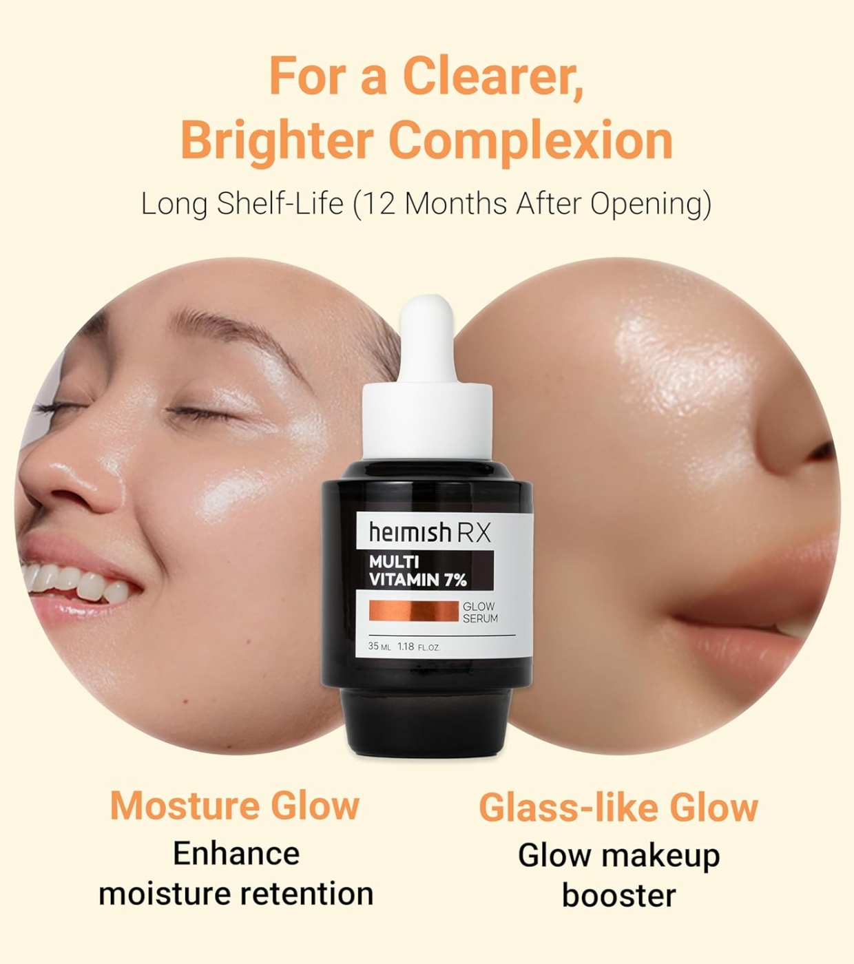 The Heimish RX Multi Vitamin Glow Serum is a brightening serum with vitamin C that combines an advanced and stable form of vitamin C (3-O-Ethyl Ascorbic Acid) with niacinamide, achieving a more even, radiant and healthy complexion.