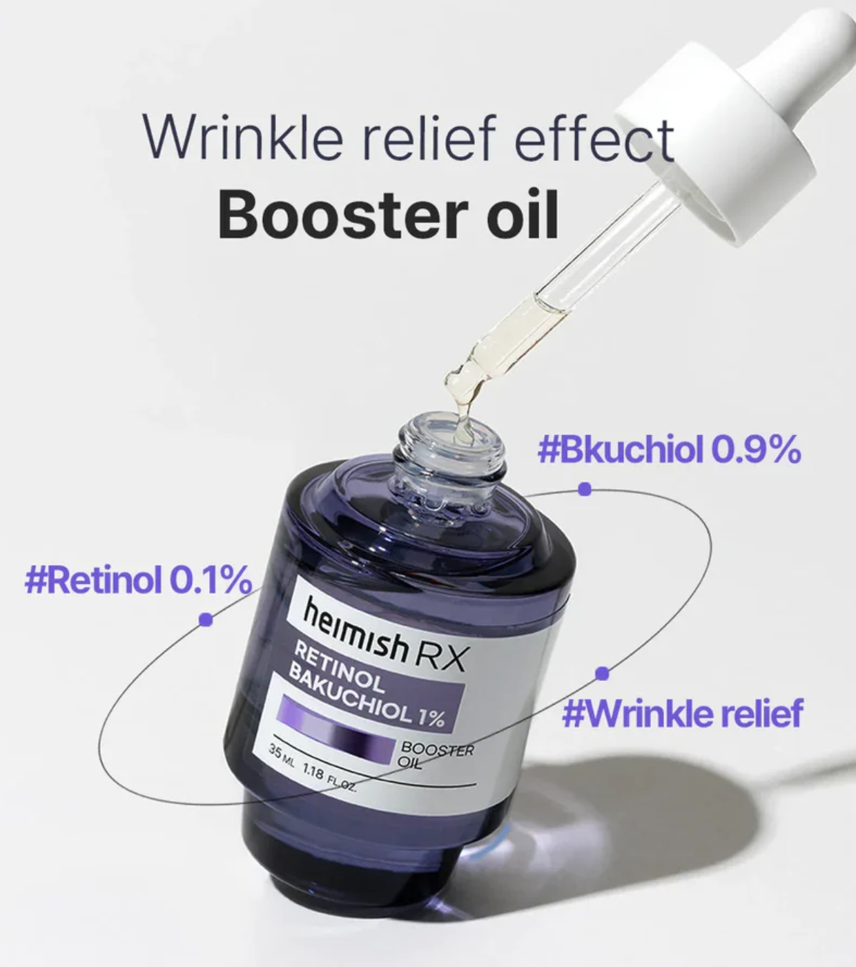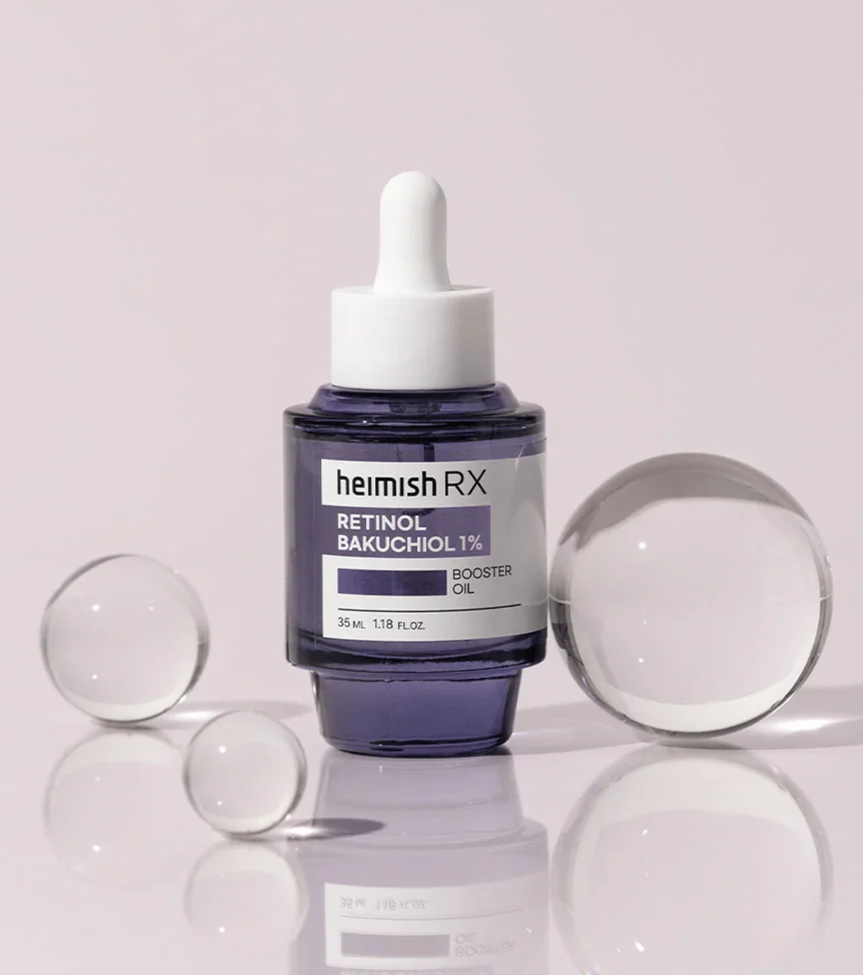 Heimish RX Retinol Bakuchiol Booster Oil is a high-performance anti-aging facial oil that combines the effectiveness of retinol (0.1%) with the plant power of bakuchiol (0.9%), known as the natural alternative to retinol.