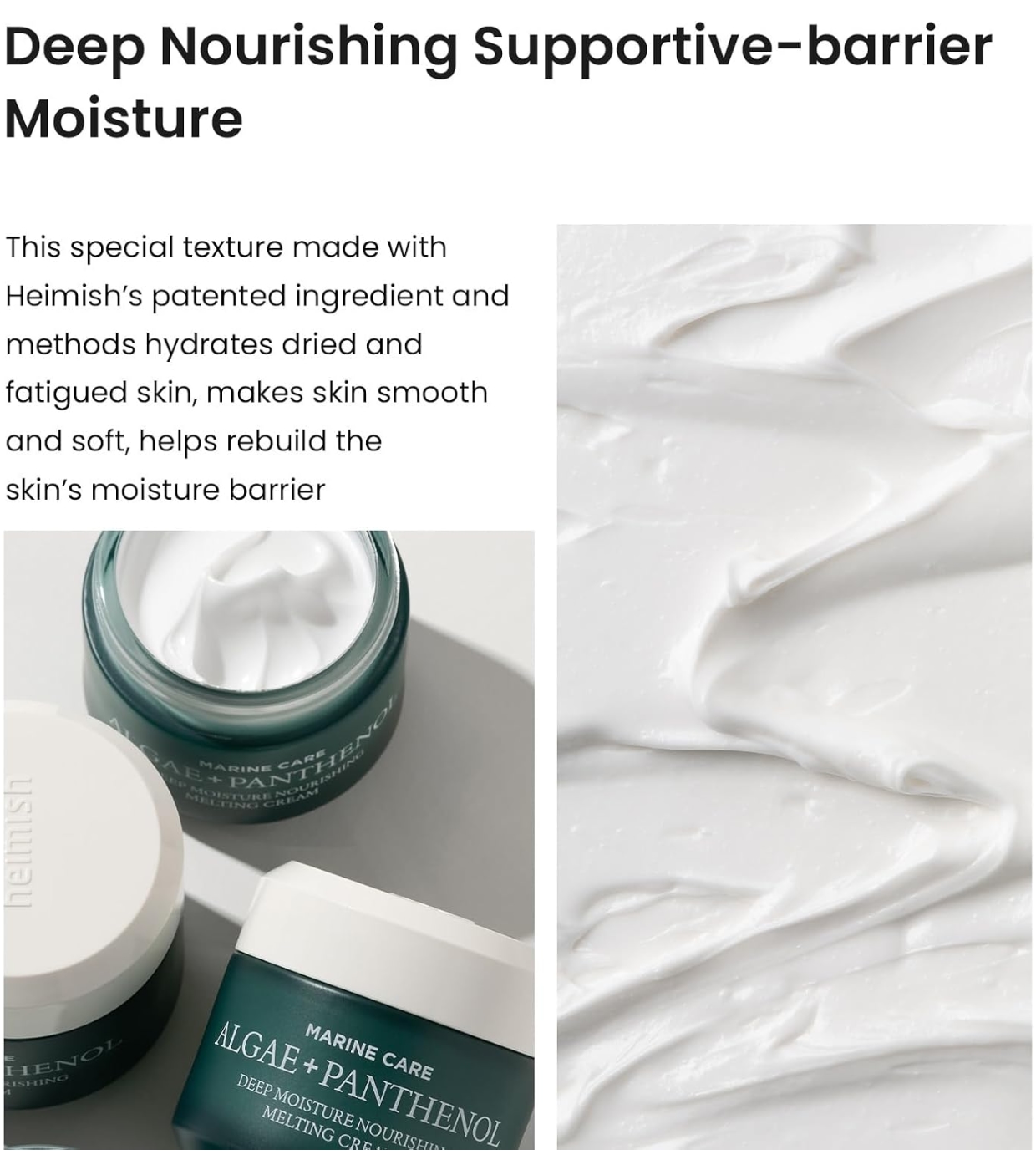 Discover Heimish Marine Care Deep Moisture Nourishing Melting Cream , a nourishing and melting facial cream that offers deep and long-lasting hydration.