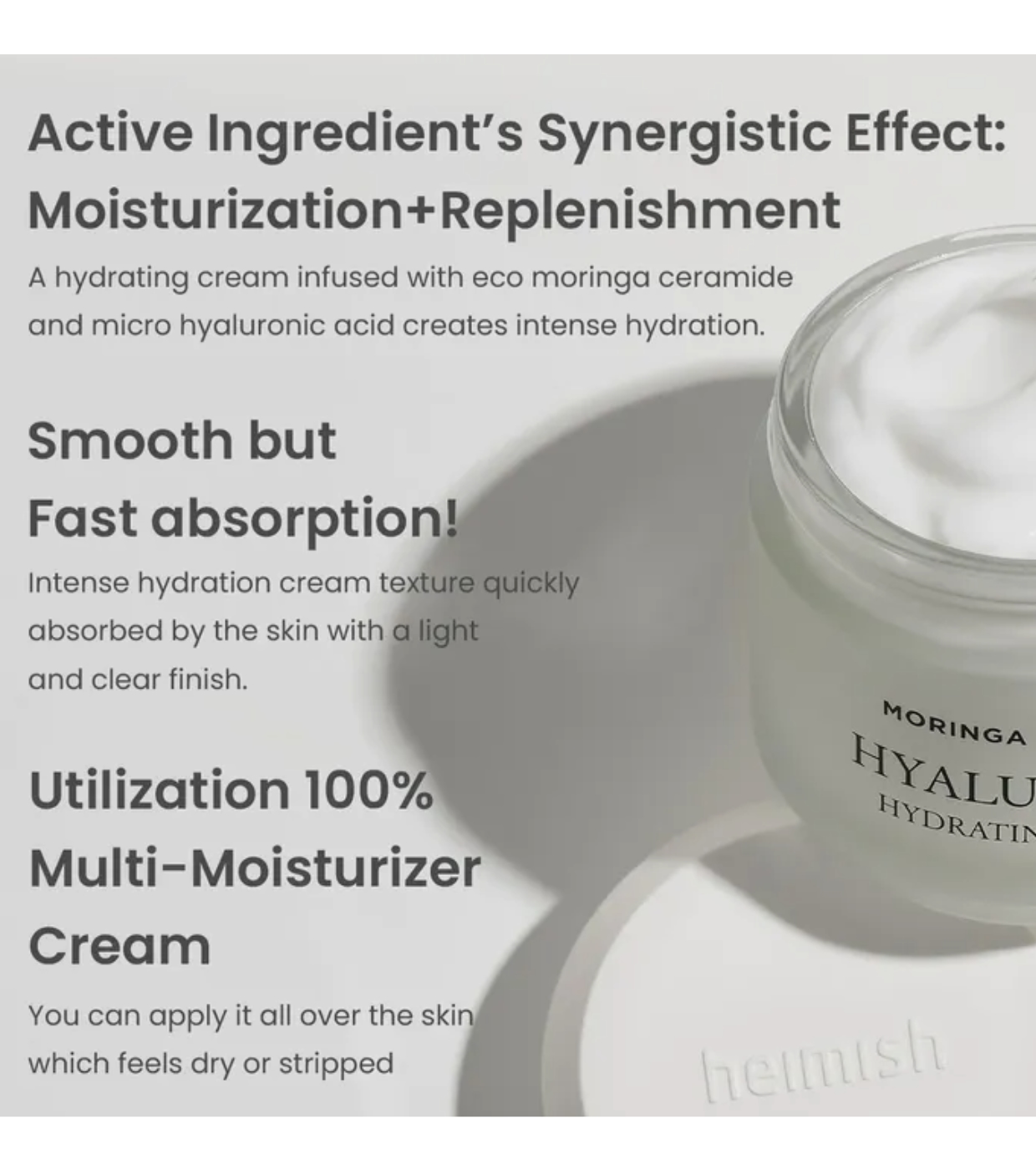 Its formula combines the synergistic effect of organic moringa ceramide with micro hyaluronic acid, providing a deep and long-lasting moisture boost.