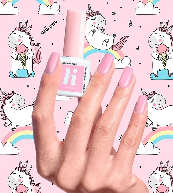 The Classic Pink nail polish from the Hi Unicorn collection leaves a lovely soft pink color.