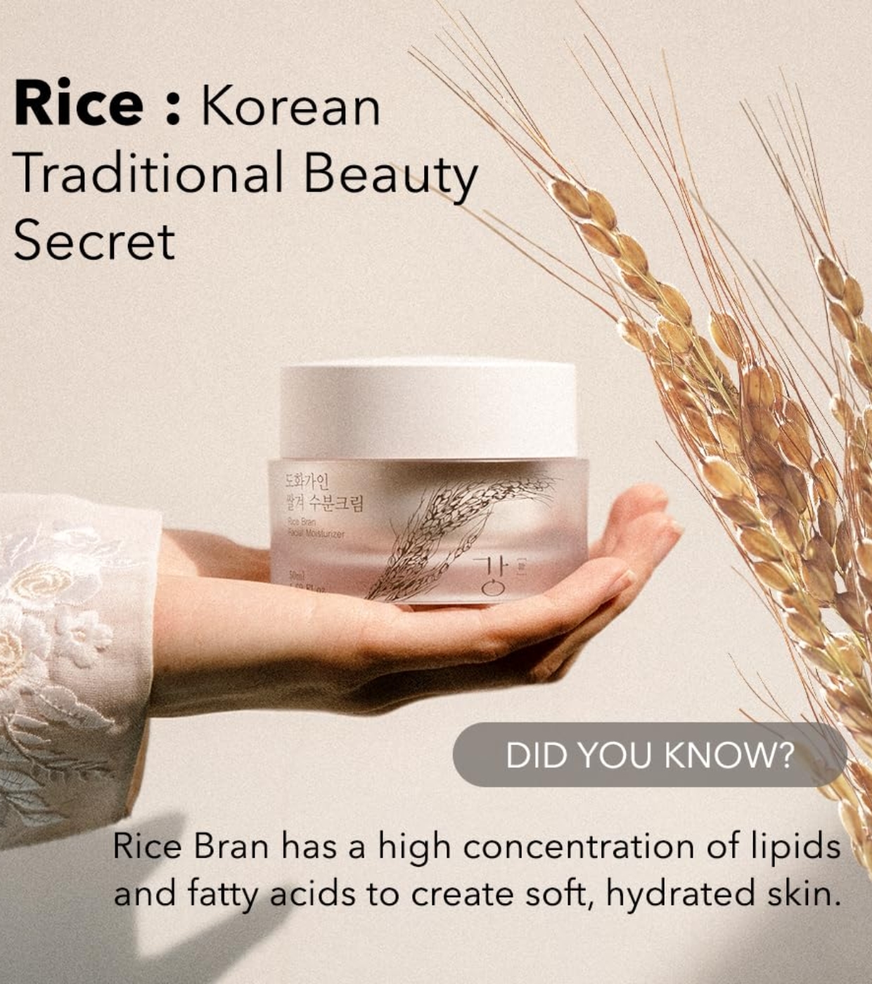 Rice Bran Facial Moisturizer Rice Bran Facial Moisturizer is a Korean facial cream formulated with rice bran, a traditional ingredient in Korean cosmetics, used for centuries for its moisturizing, soothing and brightening properties.