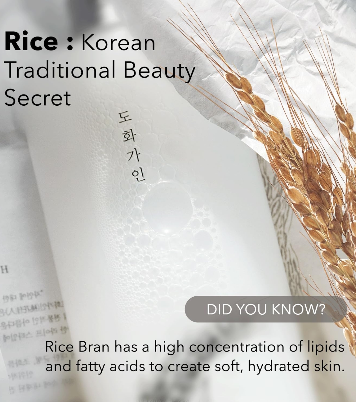 It is formulated with rice bran, and its texture is very light and ideal for easy application to the face.