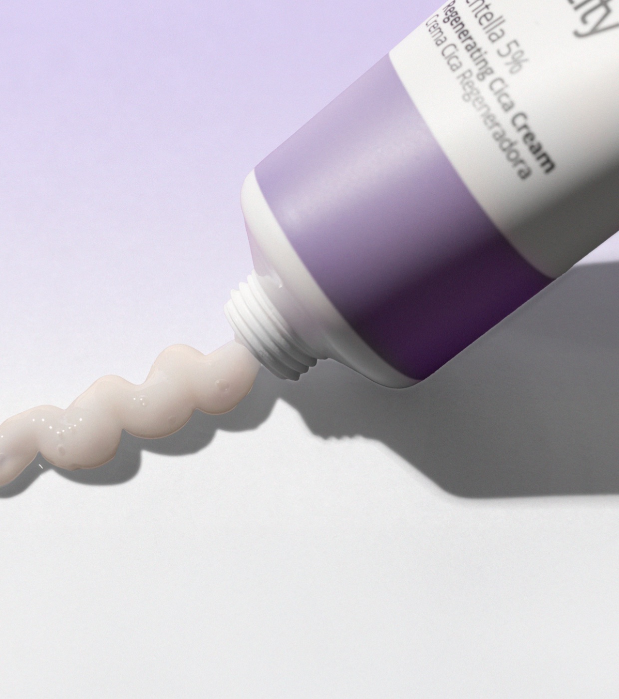 The regenerating cica cream has a rich texture with gotu kola, with regenerating, healing and
