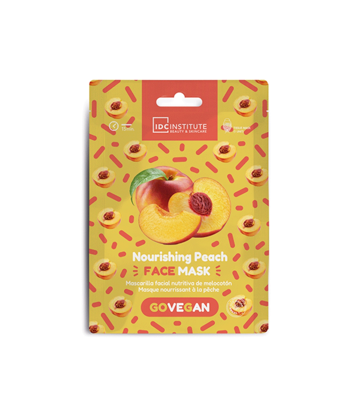 This IDC Institute paper face mask is infused with peach extract, known for its purifying and revitalizing properties.