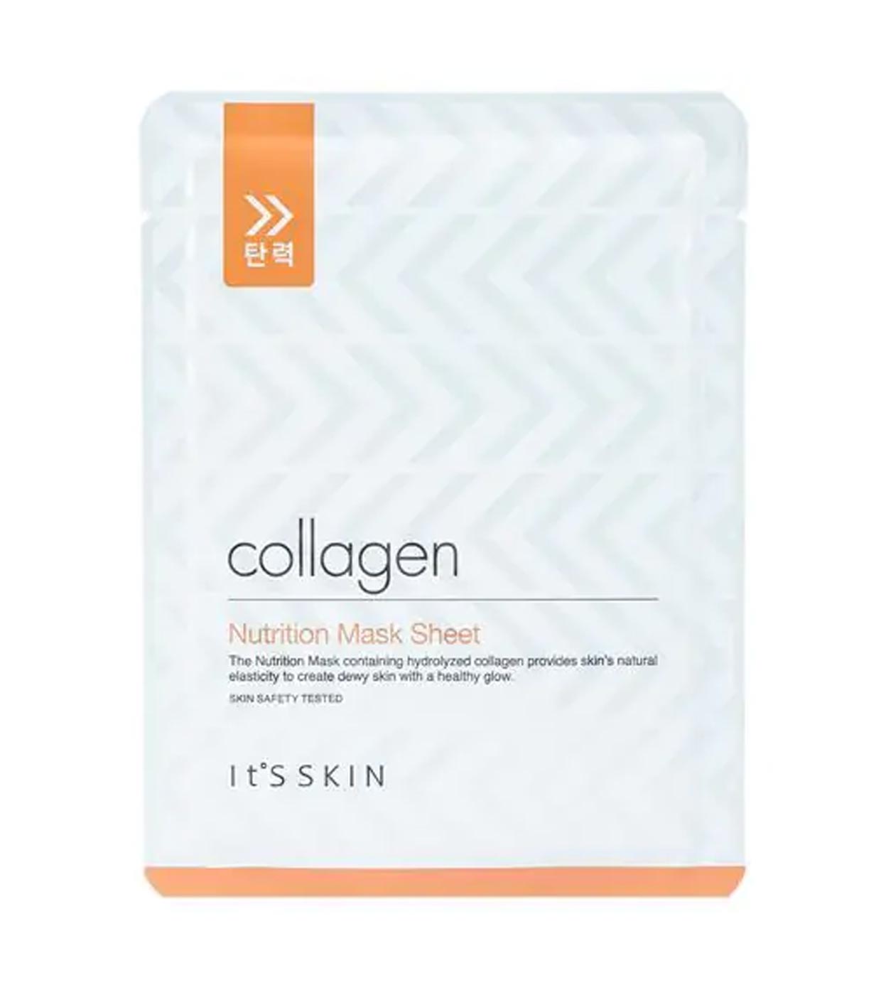 Collagen Nutrition Mask Sheet Collagen nutrition mask contains hydrolyzed collagen to create hydrated skin with a healthy glow.
