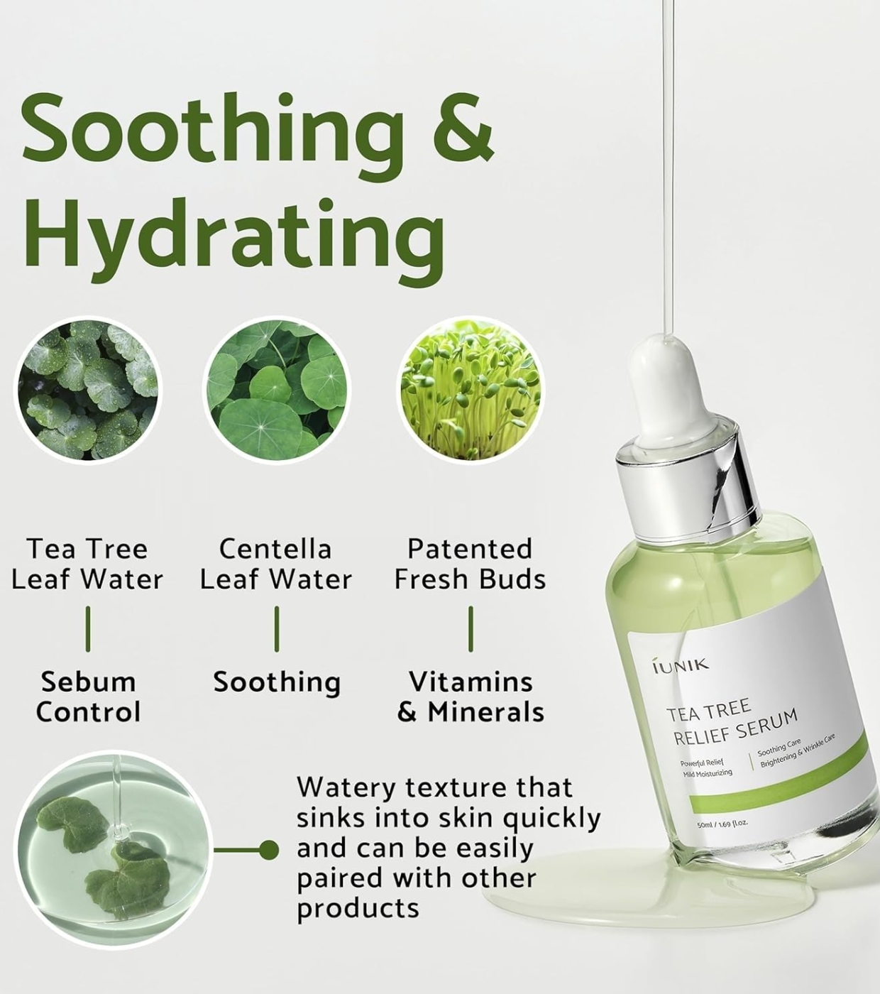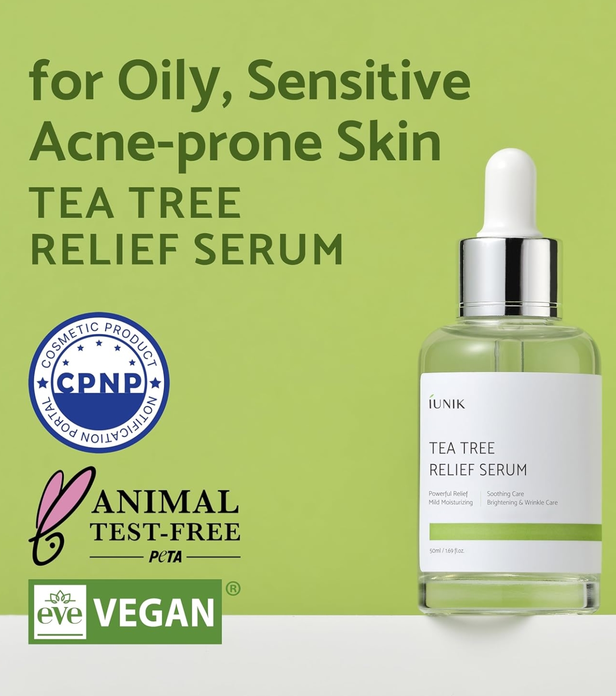 iUNIK Tea Tree Relief Serum is a soothing and repairing serum specially formulated for sensitive, irritated or acne-prone skin.