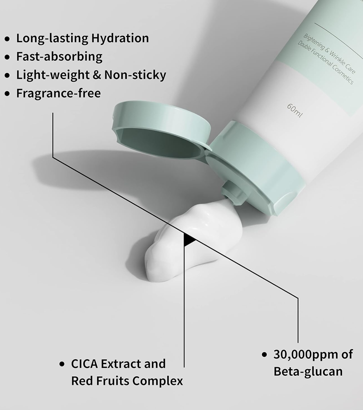 Superior Hydration: Contains 3,000 mg of Beta-Glucan, a natural ingredient extracted from mushrooms, 20% more hydrating than hyaluronic acid. It strengthens the skin barrier, soothes the skin, and provides an immediate tightening effect.