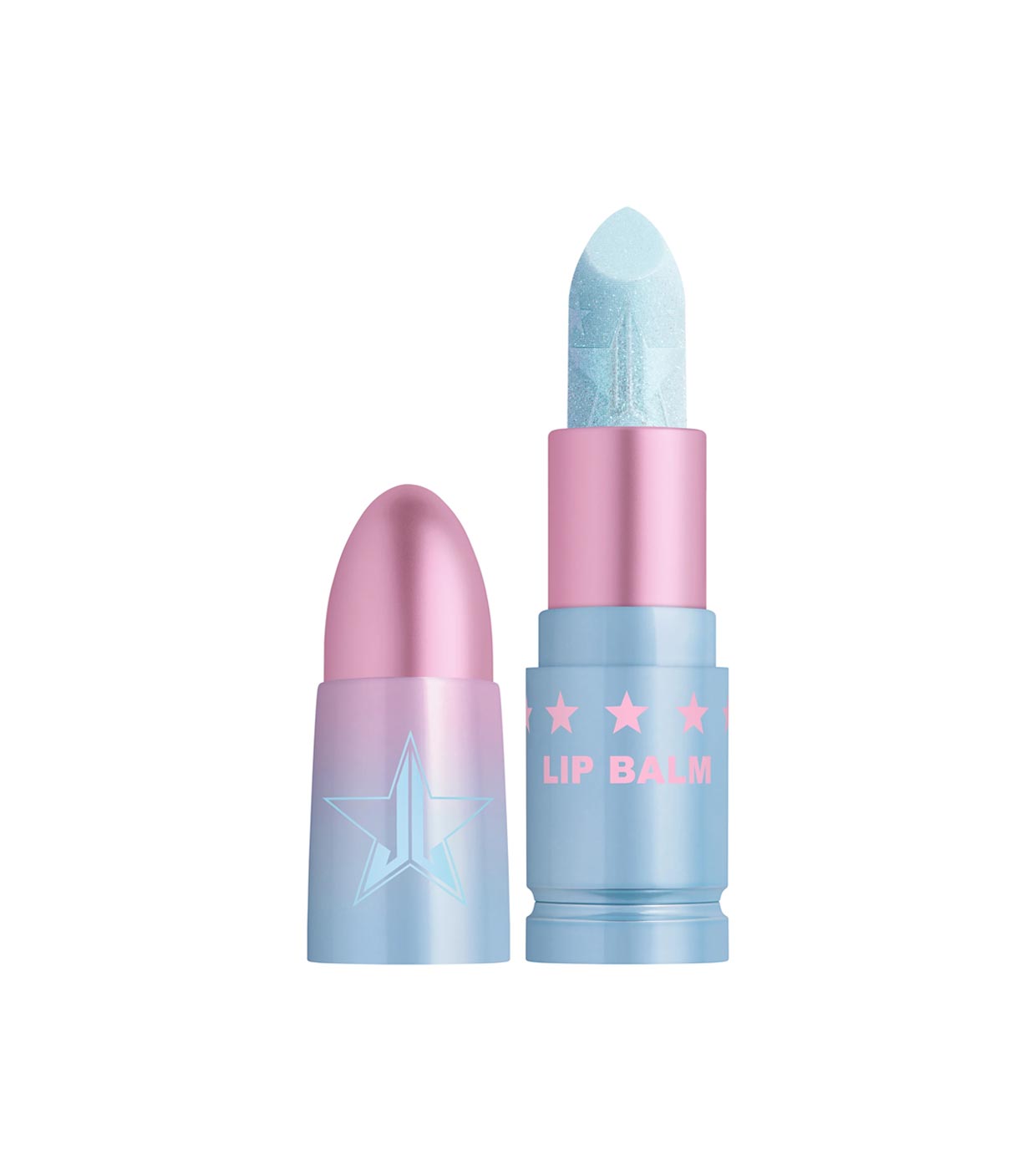Moisturize your caramel lips with Hydrating Glitz lip balm from the Cotton Candy Queen collection by Jeffree Star Cosmetics.
