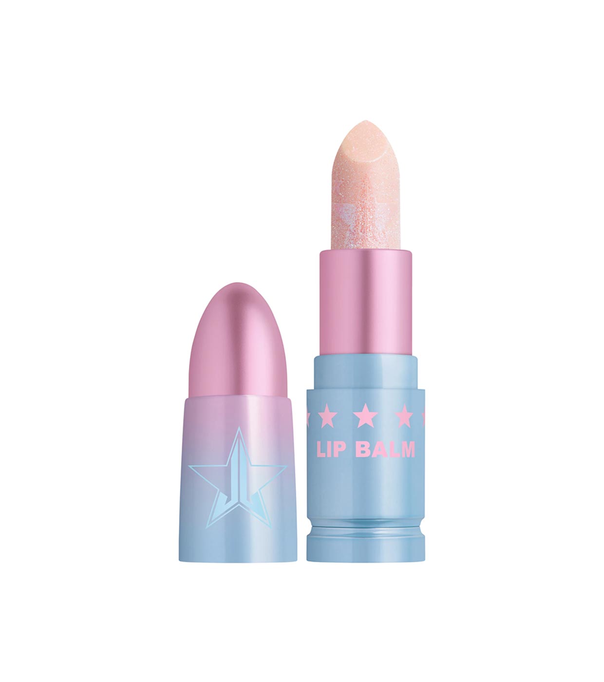 Moisturize your caramel lips with Hydrating Glitz lip balm from the Cotton Candy Queen collection by Jeffree Star Cosmetics.