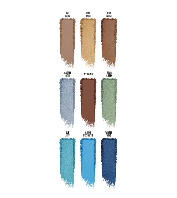 This palette contains 9 dazzling shades inspired by a love of nature and the elements of the west.