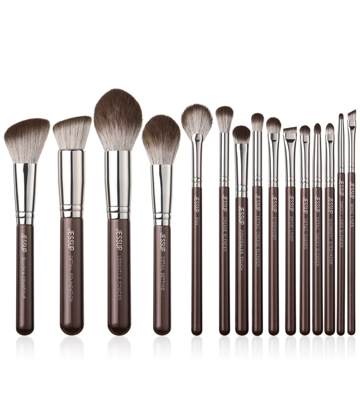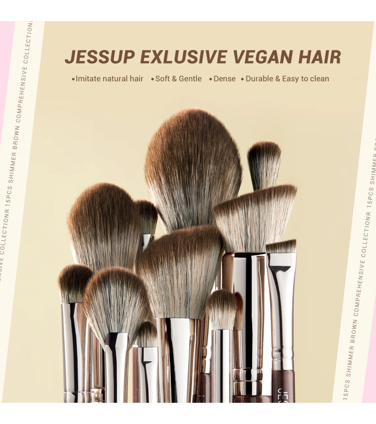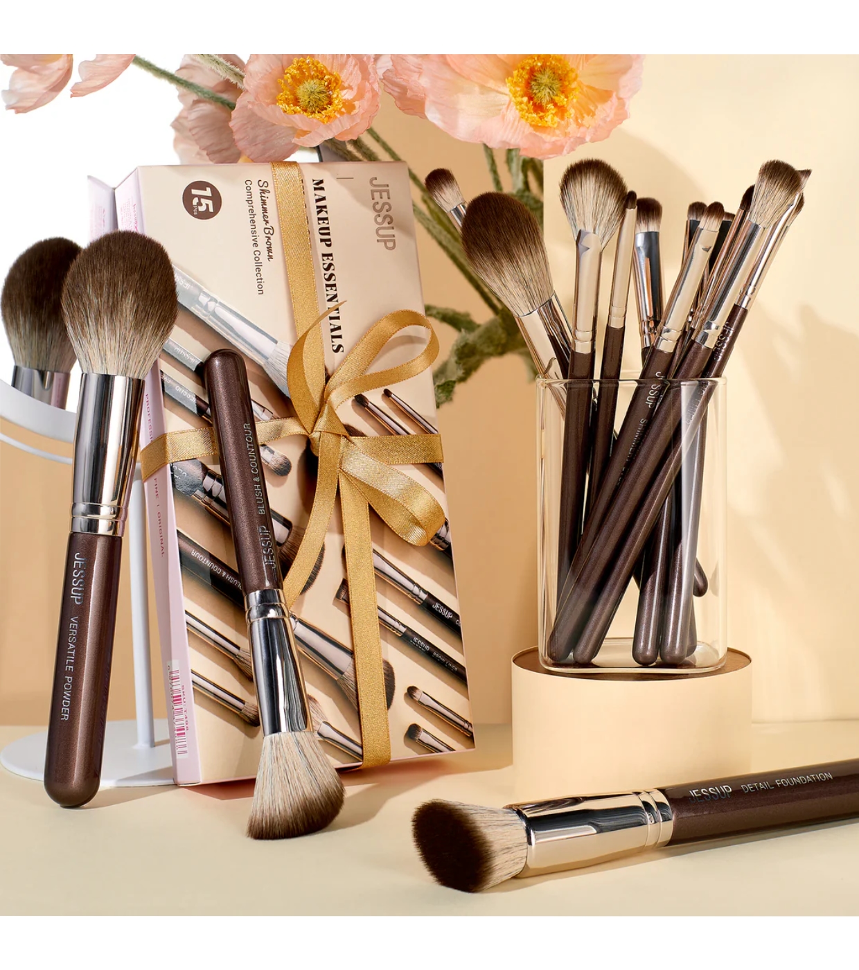 Set of 15 brushes Shimmer Brown Makeup Essentials in a Box by Jessup Beauty.