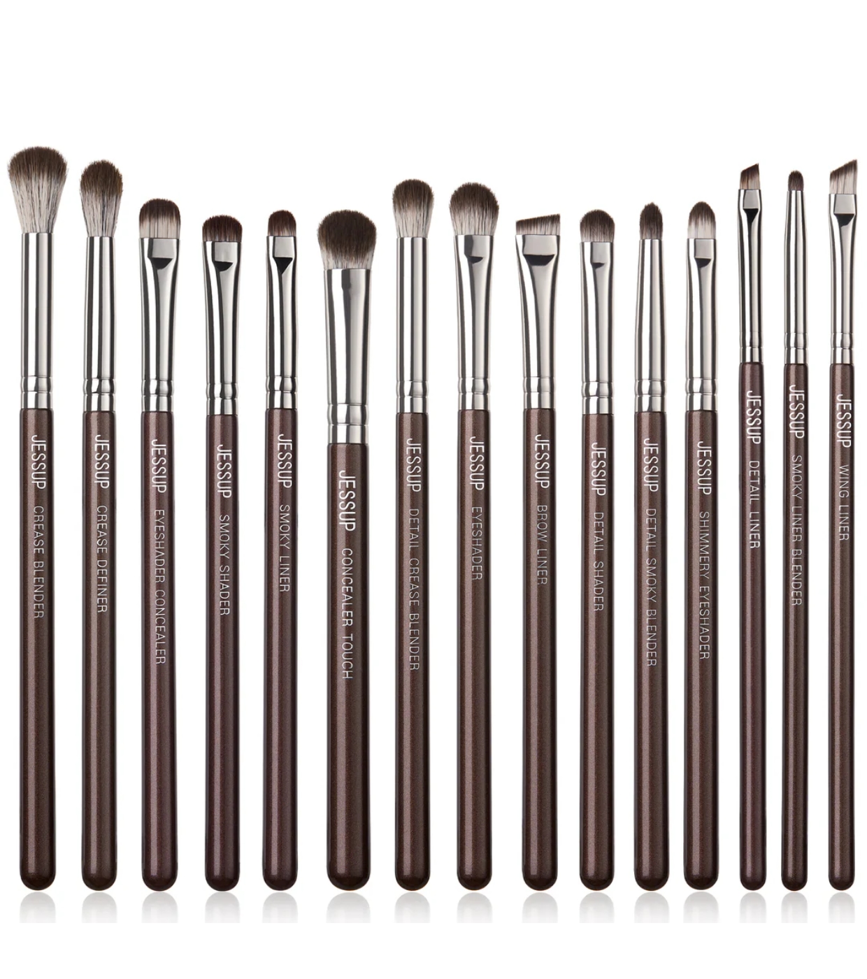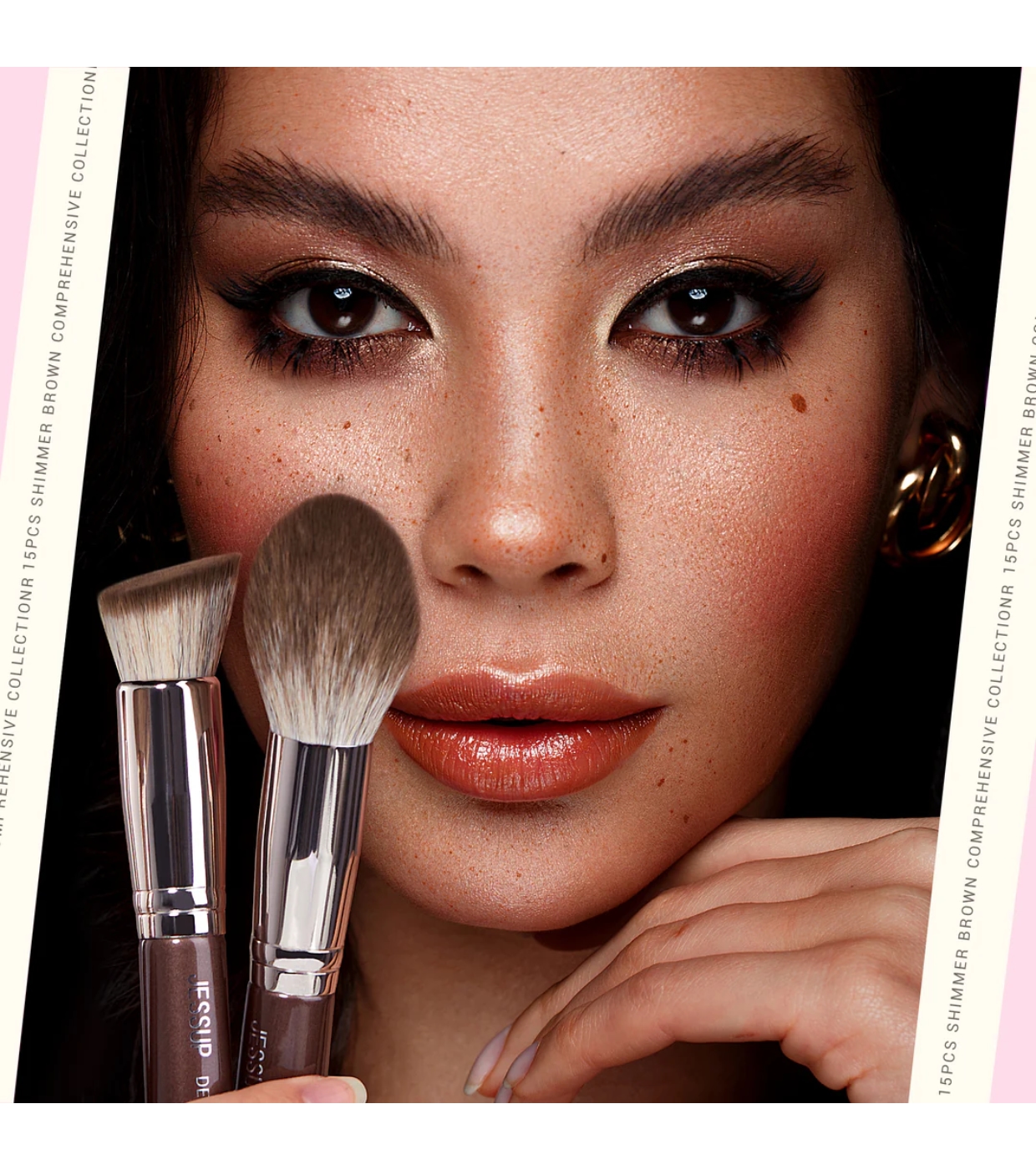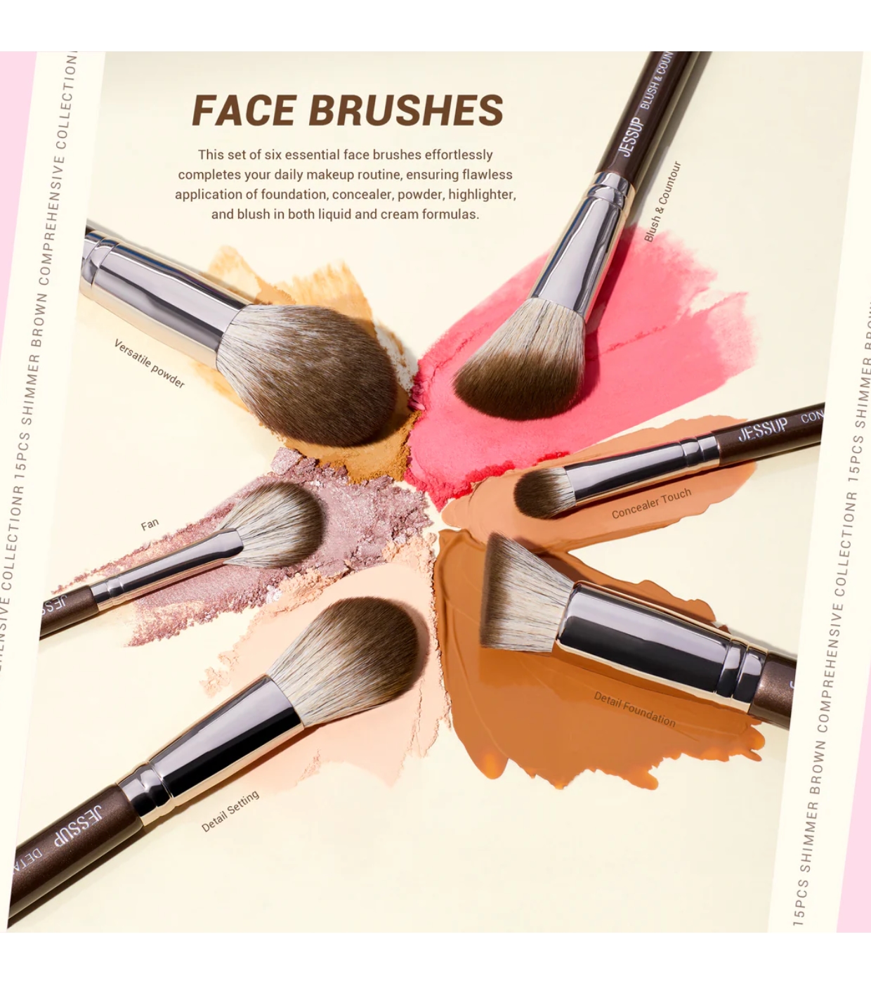 Set of 15 brushes Shimmer Brown Makeup Essentials in a Box by Jessup Beauty.
