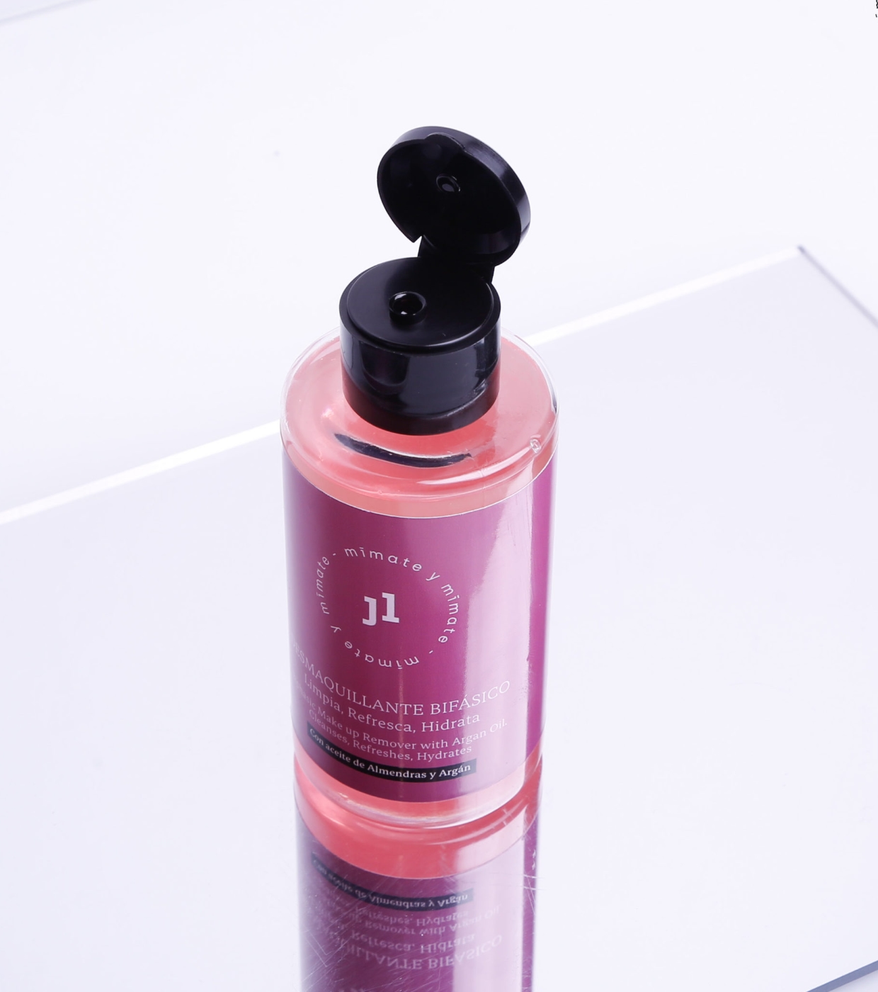 José López's biphasic makeup remover , formulated with 96% natural ingredients, offers deep yet gentle cleansing, ideal for eyes and lips, even with waterproof makeup.