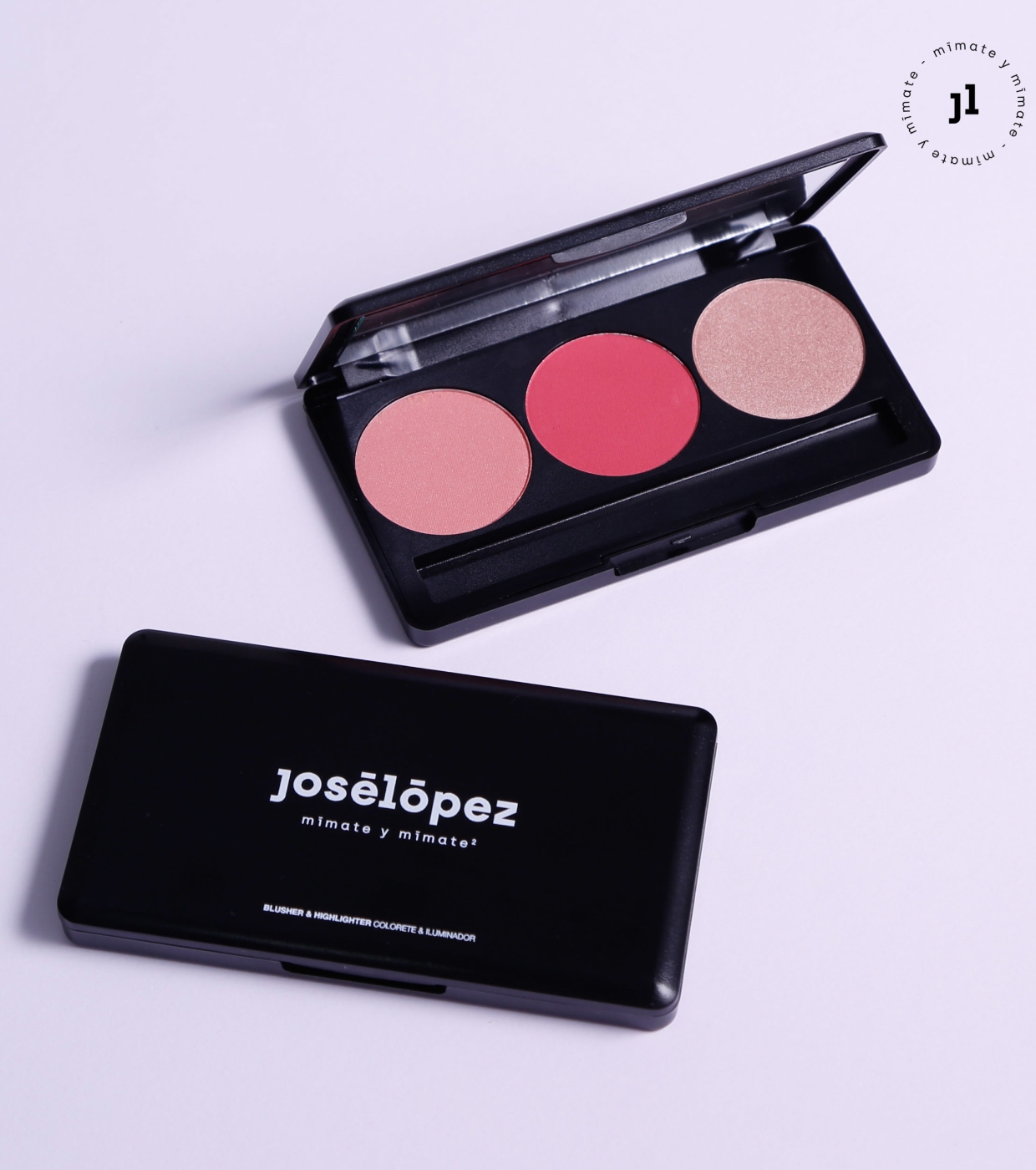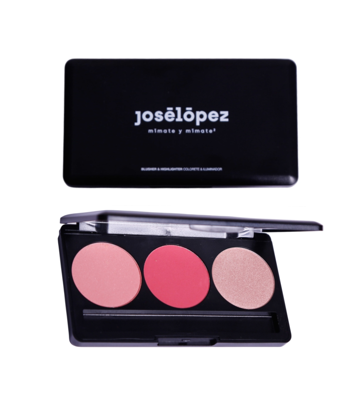 This facial palette by José López combines two highly pigmented warm blushes in Apricot and Coral shades, with a creamy, ultra-fine highlighter that provides a natural glow without creating fine lines.
