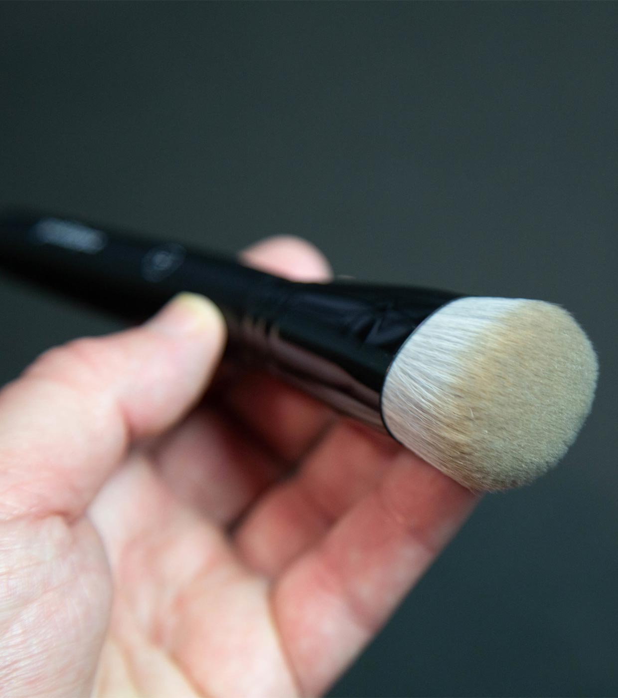 The best way to apply foundation with this brush is to first tap it and then stretch the product over the skin, even in a circular motion.