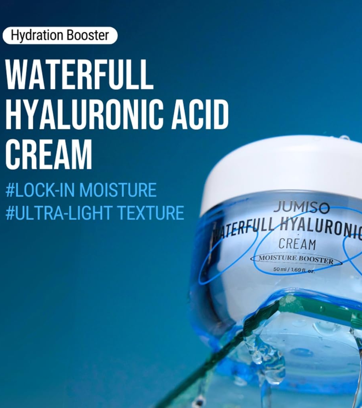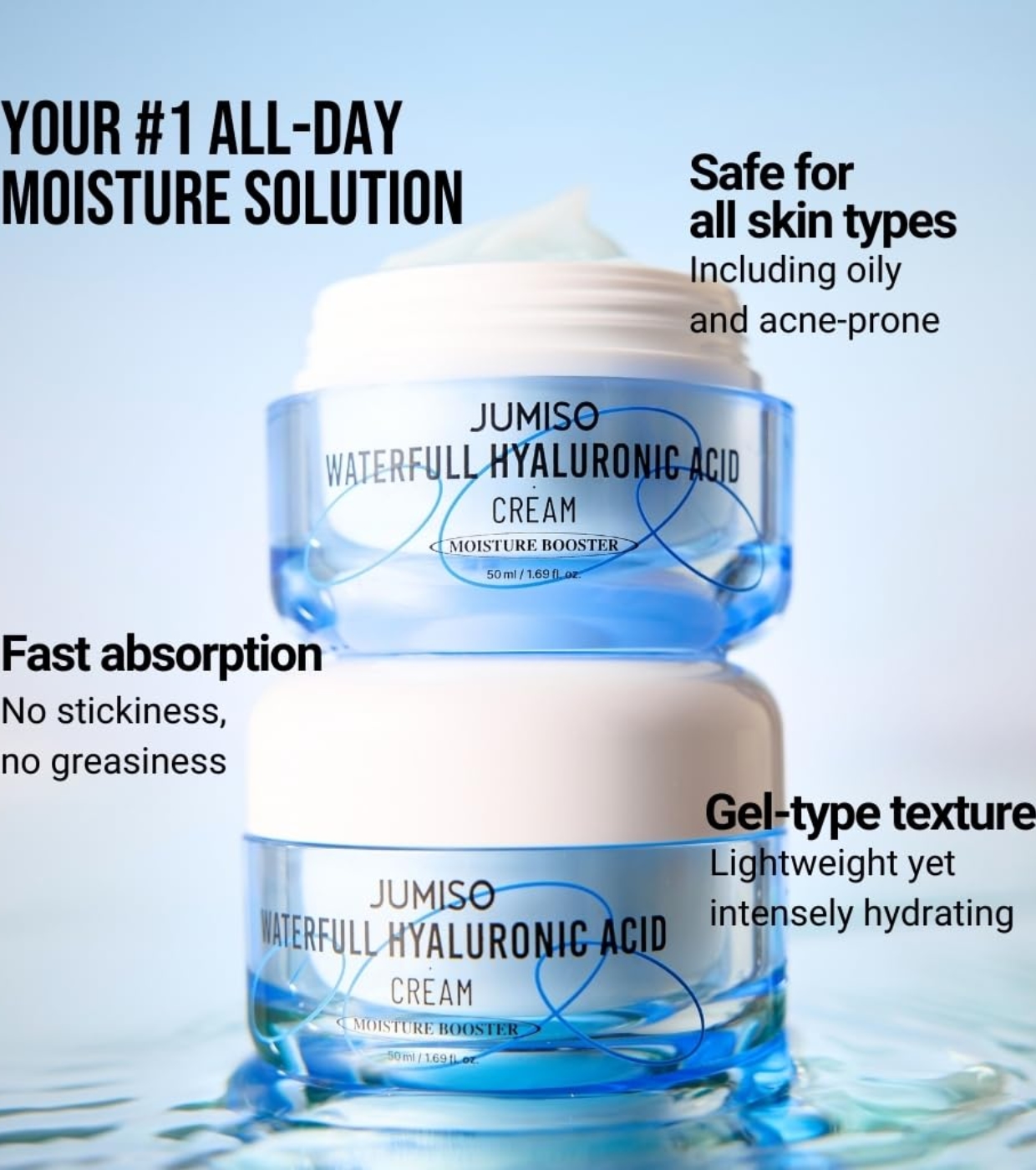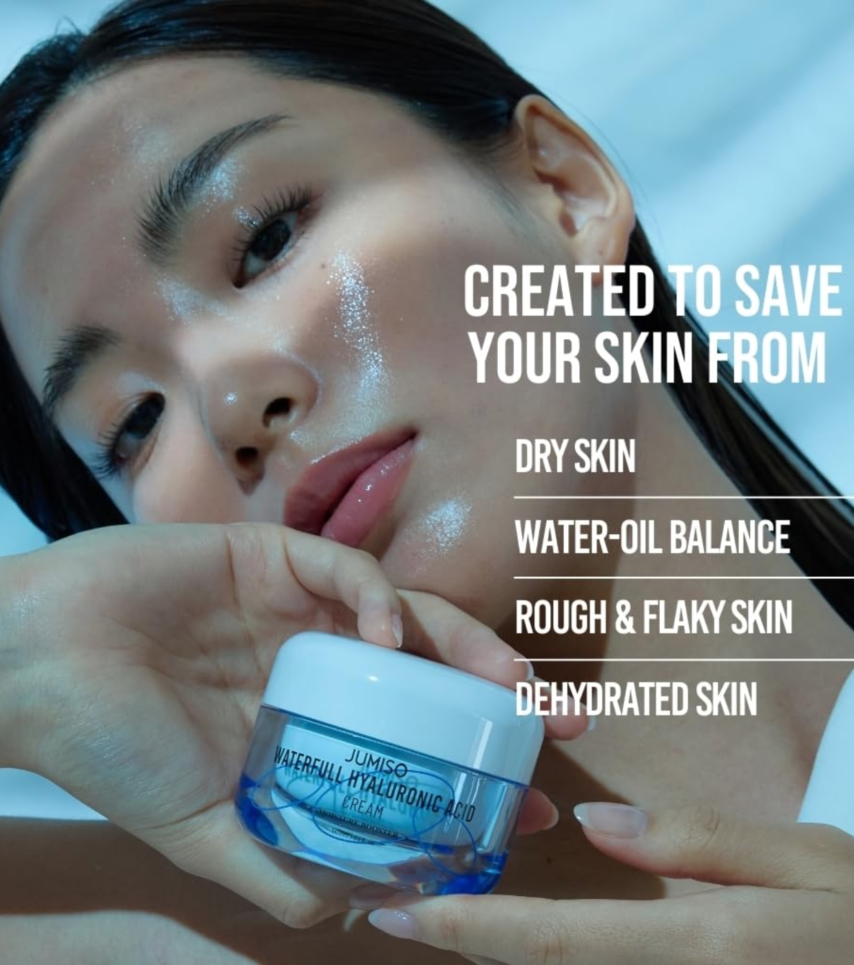 This Waterfull Hyaluronic Moisturizing Face Cream from Jumiso provides a large amount of moisture from hyaluronic acid of three different sizes that penetrate the different layers of the skin.