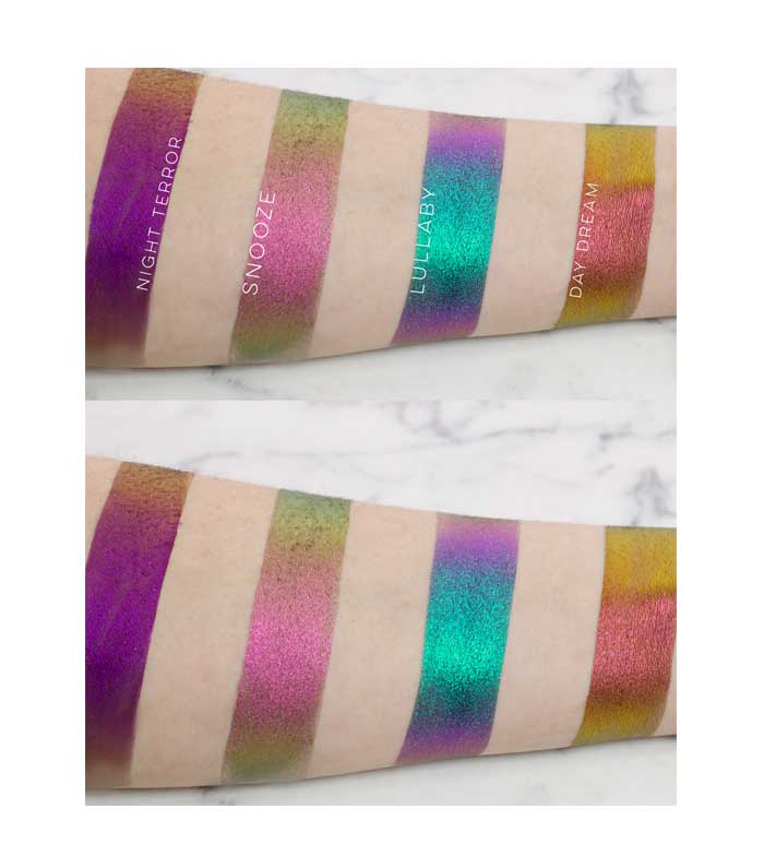 Eva Versatile ArtistEs una fantasia el pigmento que tienen, dice duocromo pero tiene muchos más colores que solo dos! con su primer en gel se quedan donde estan durante horas y horas! pero tb se pueden apllicar tan cual porque el pigmento que tiene lo permite! Esta combinación de colores es mi preferida, no es duocromo , es multicromo tiene muchos más matices que solo dos!!!!