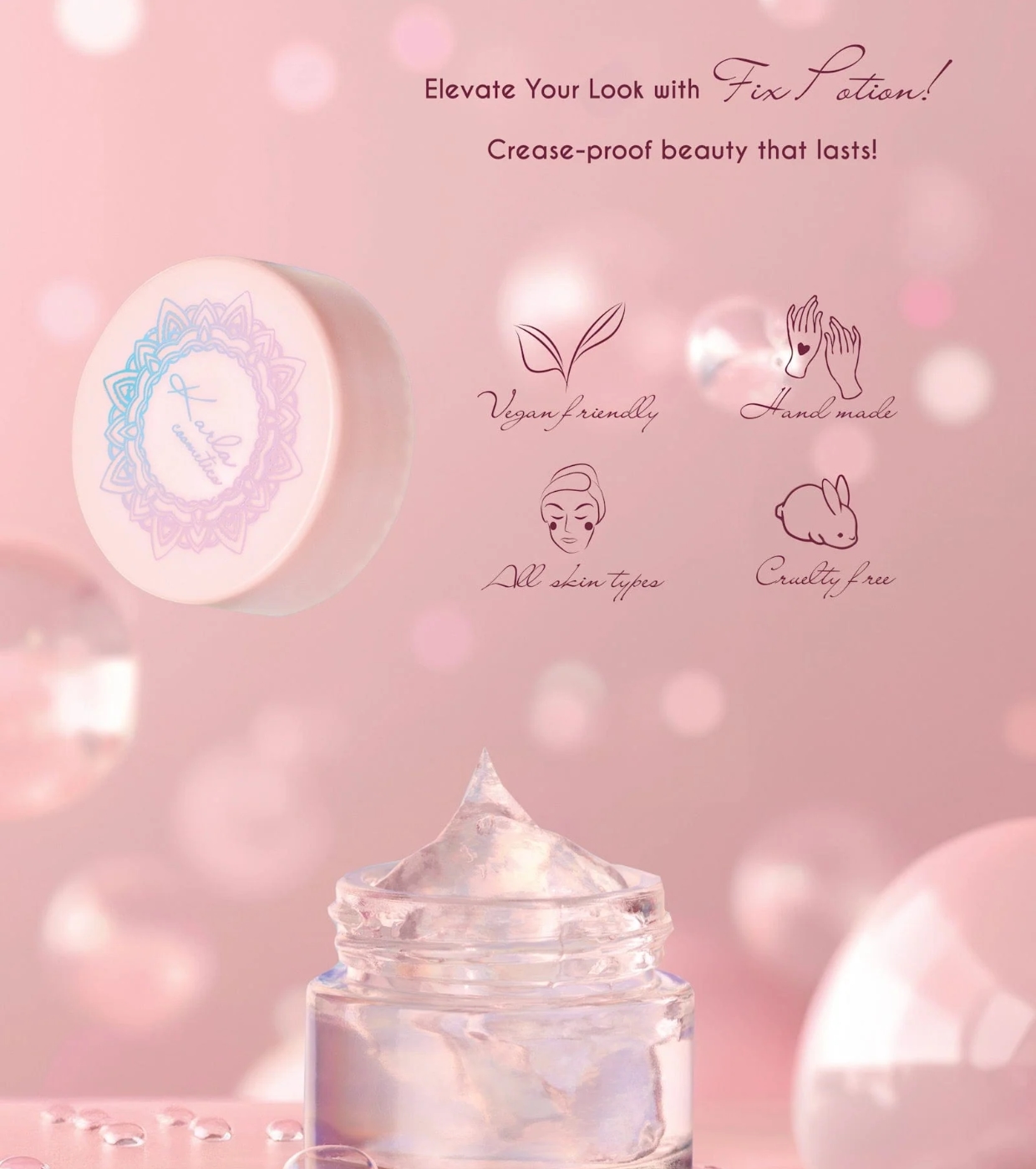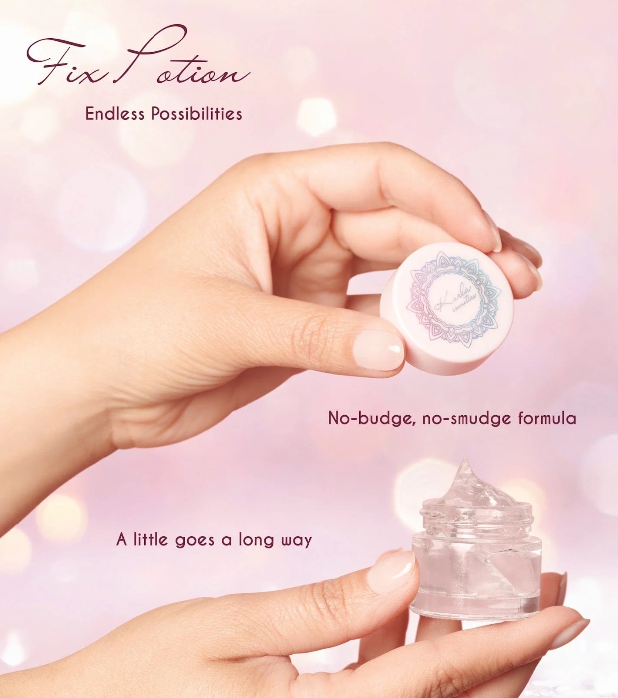 Fix Potion, is a prebase in light, silky and crystalline gel, with a semi-matte finish that guarantees that your shine, pigments and eye shadows stay perfectly for hours.