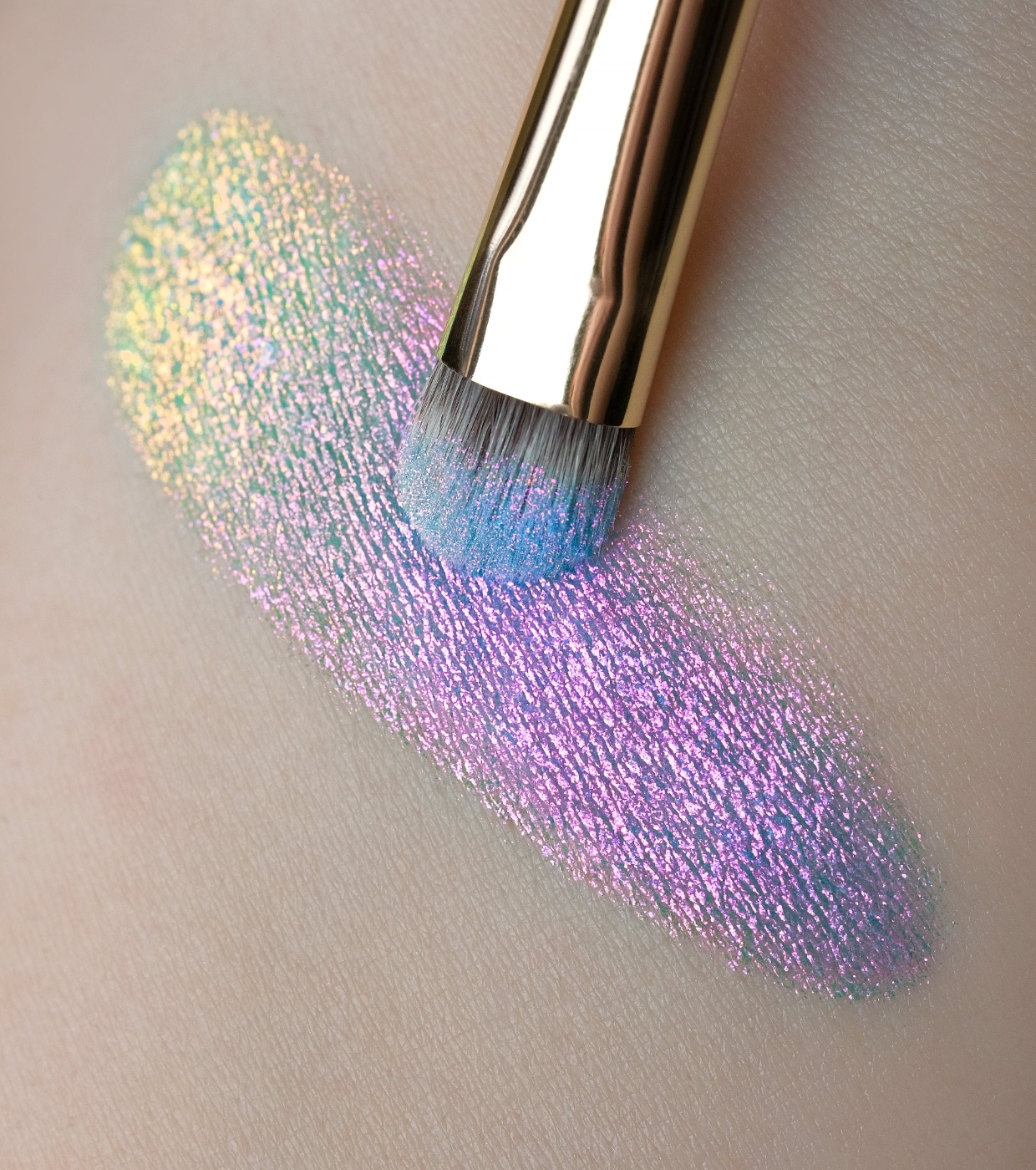 Apply a layer over a colored eyeshadow base to create a touch of sheer, luminous shine, or you can create an opaque finish if desired.