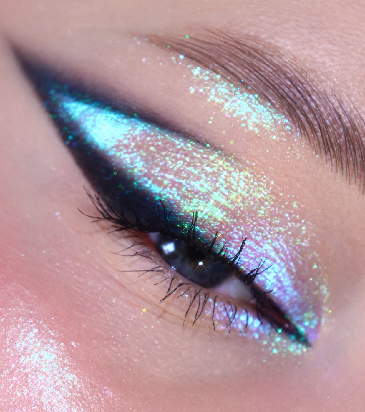 Apply a layer over a colored eyeshadow base to create a touch of sheer, luminous shine, or you can create an opaque finish if desired.