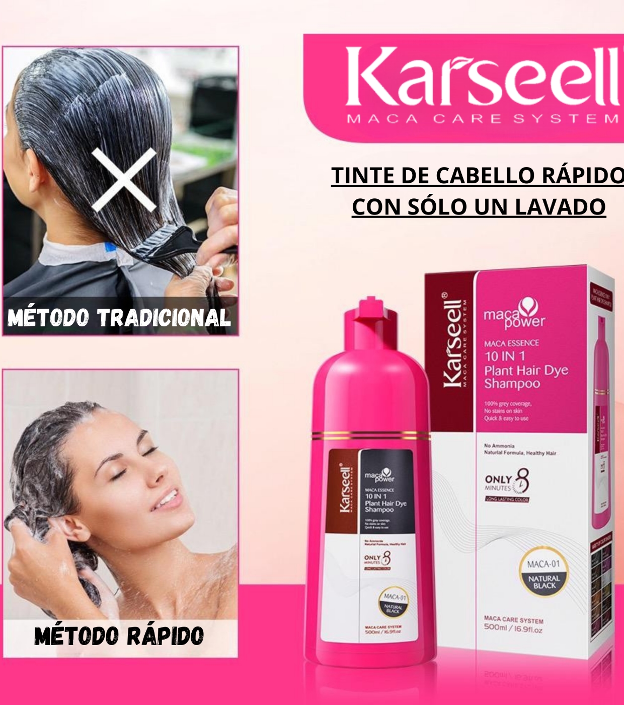 The Karseell 10-in-1 Hair Color Shampoo covers gray hair quickly and naturally while nourishing and strengthening the hair.