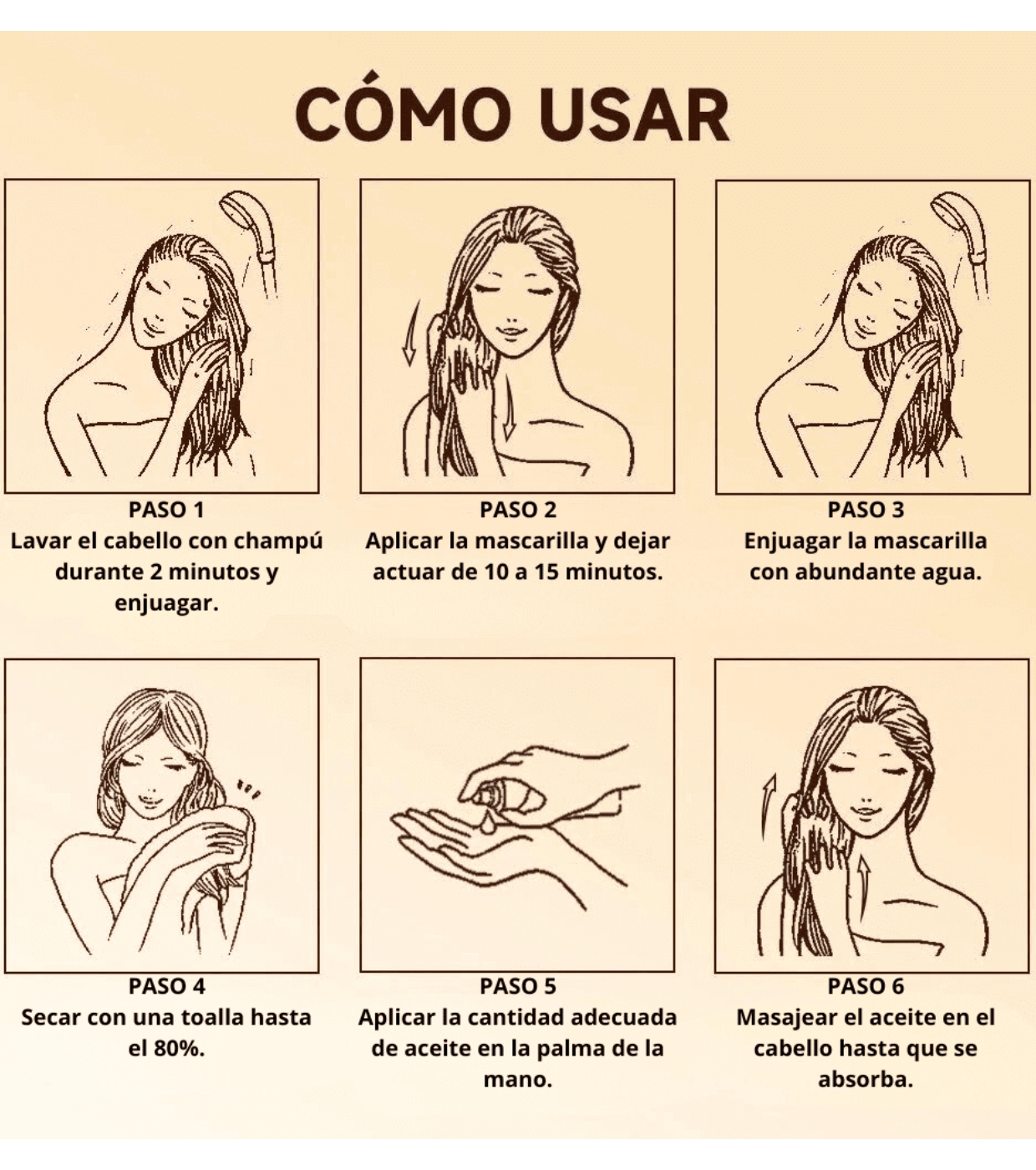 Hair: Massage a few drops throughout your hair for 3 minutes for shiny, silky hair.