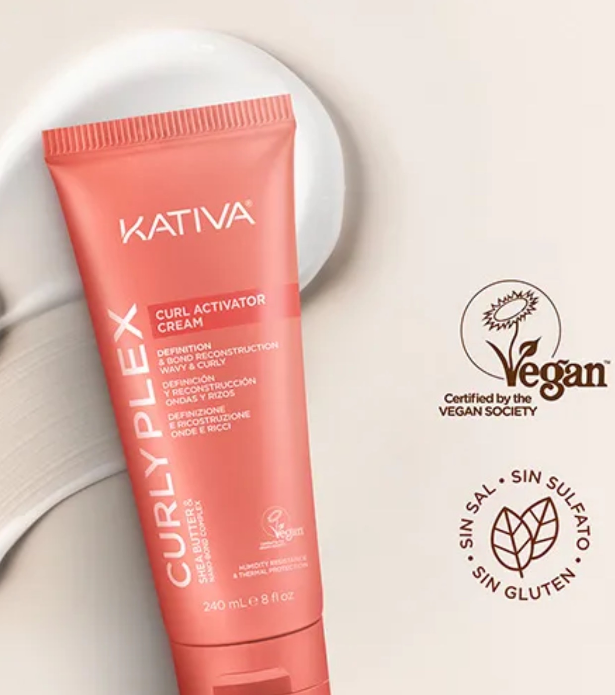 Kativa 's Curly Plex curl activating cream is formulated to instantly control and define curls without weighing hair down or making it feel heavy, even in high humidity.
