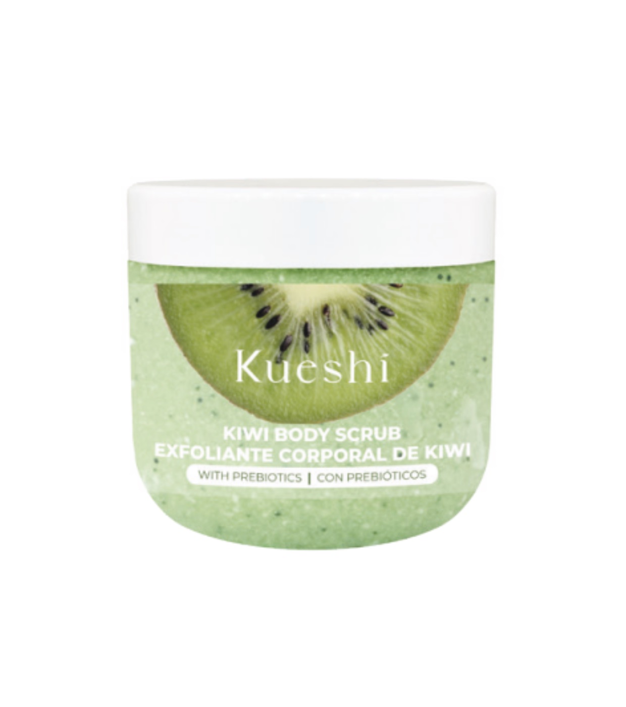 Kueshi's kiwi body scrub cleanses and renews the skin while helping to maintain the natural balance of the skin's microbiota.