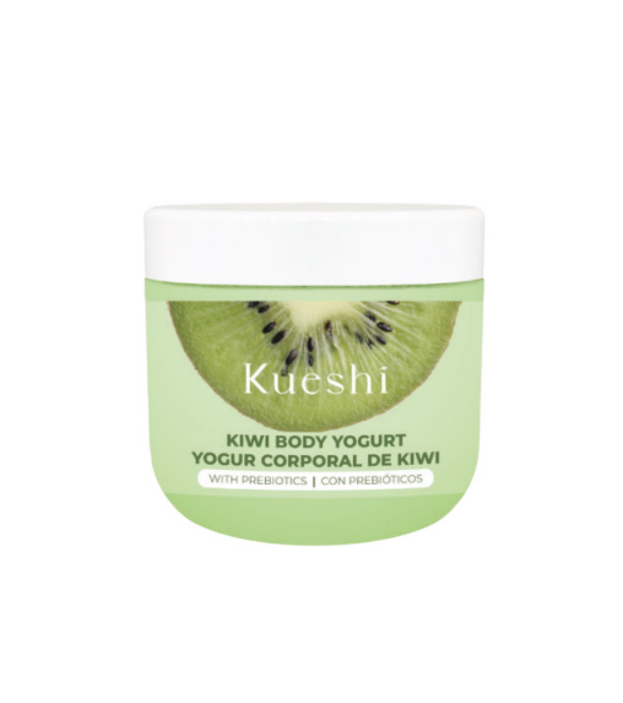 Kueshi 's kiwi body yogurt with prebiotics combines a light and refreshing texture with a formula designed to deeply moisturize and maintain the skin's natural balance.