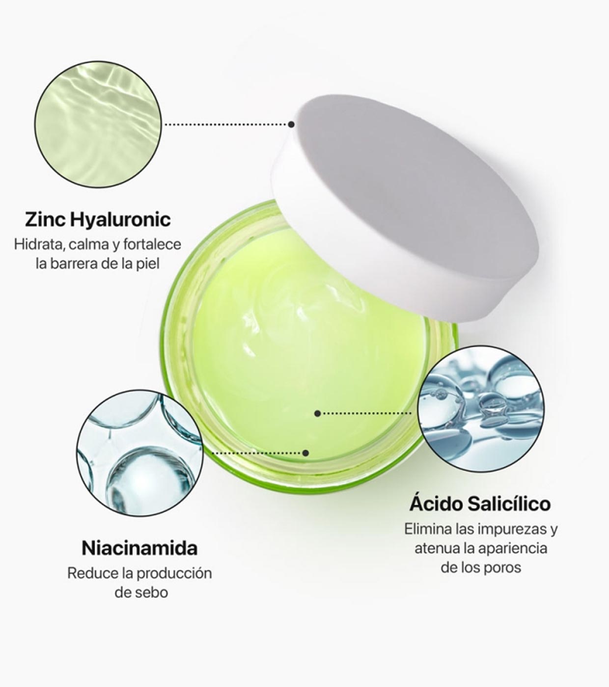 A unique non-comedogenic and Oil-free formula with Hyaluronic Zinc, Niacinamide and Salicylic Acid.