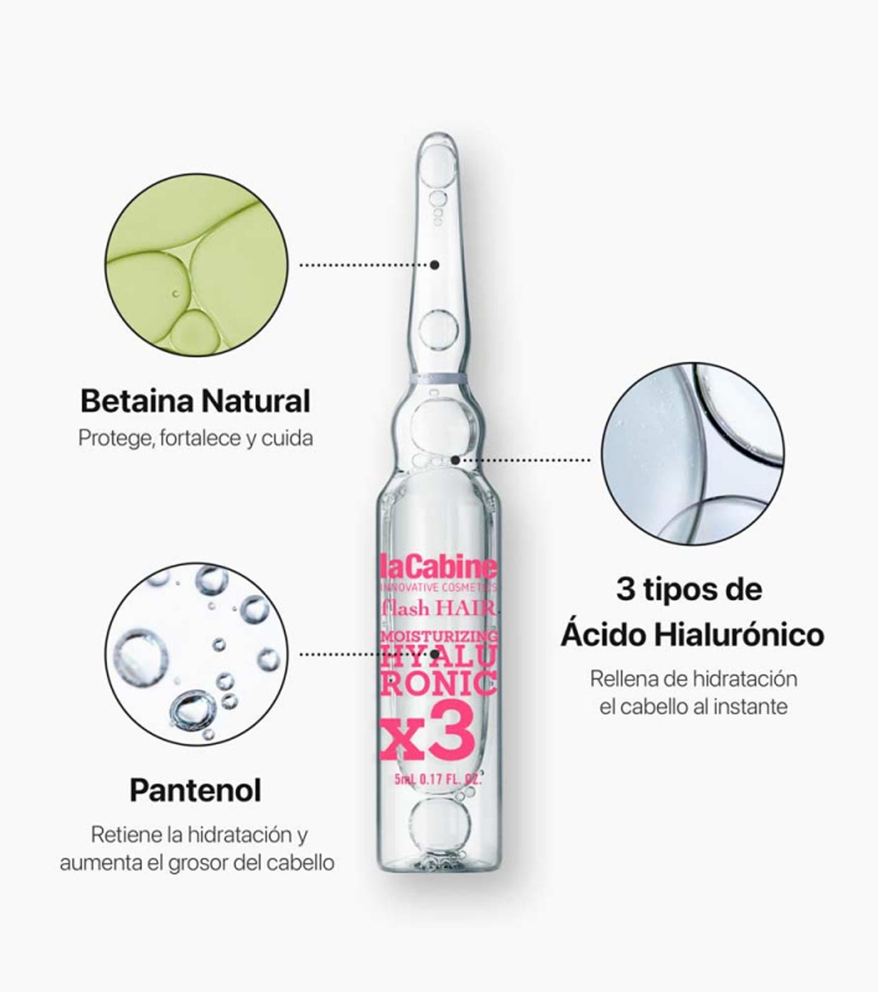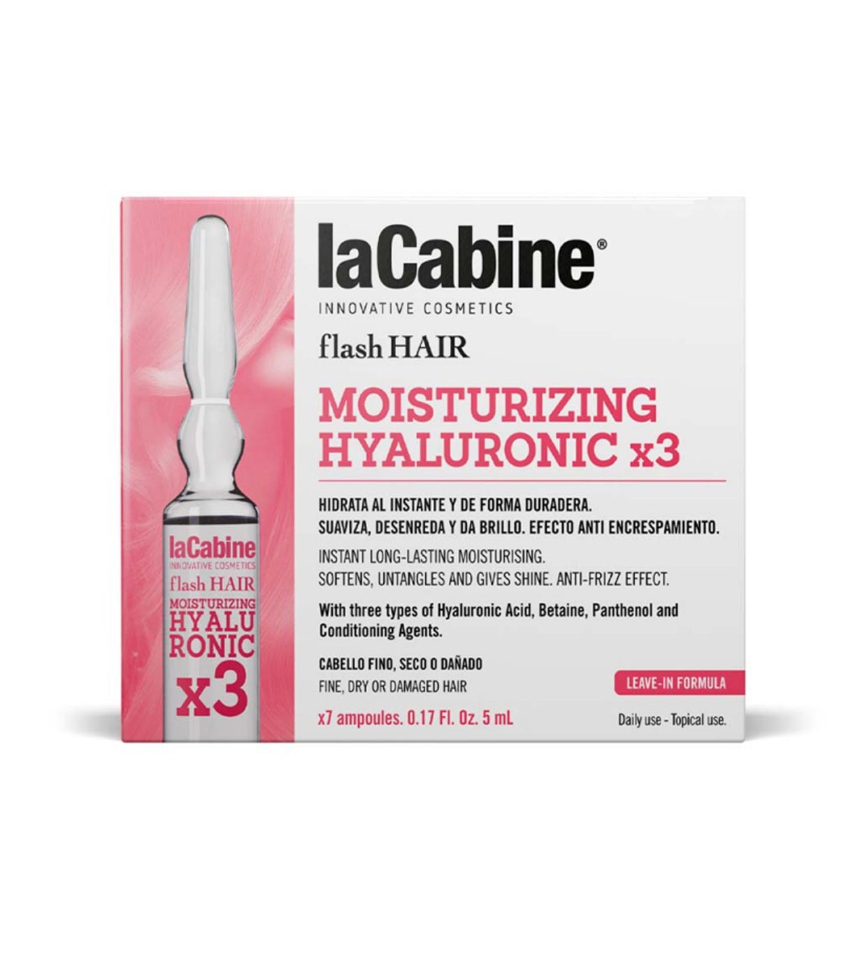 Moisturizing hair ampoules Moisturizing Hyaluronic x3 from La Cabine for fine, dry or damaged hair.