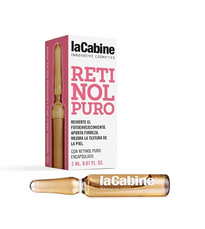 Concentrated facial ampoule with encapsulated Pure Retinol that reverts photo-aging and improves skin texture while maintaining the balance of the extracellular matrix, providing firmness and stimulating the synthesis of collagen and Hyaluronic Acid.