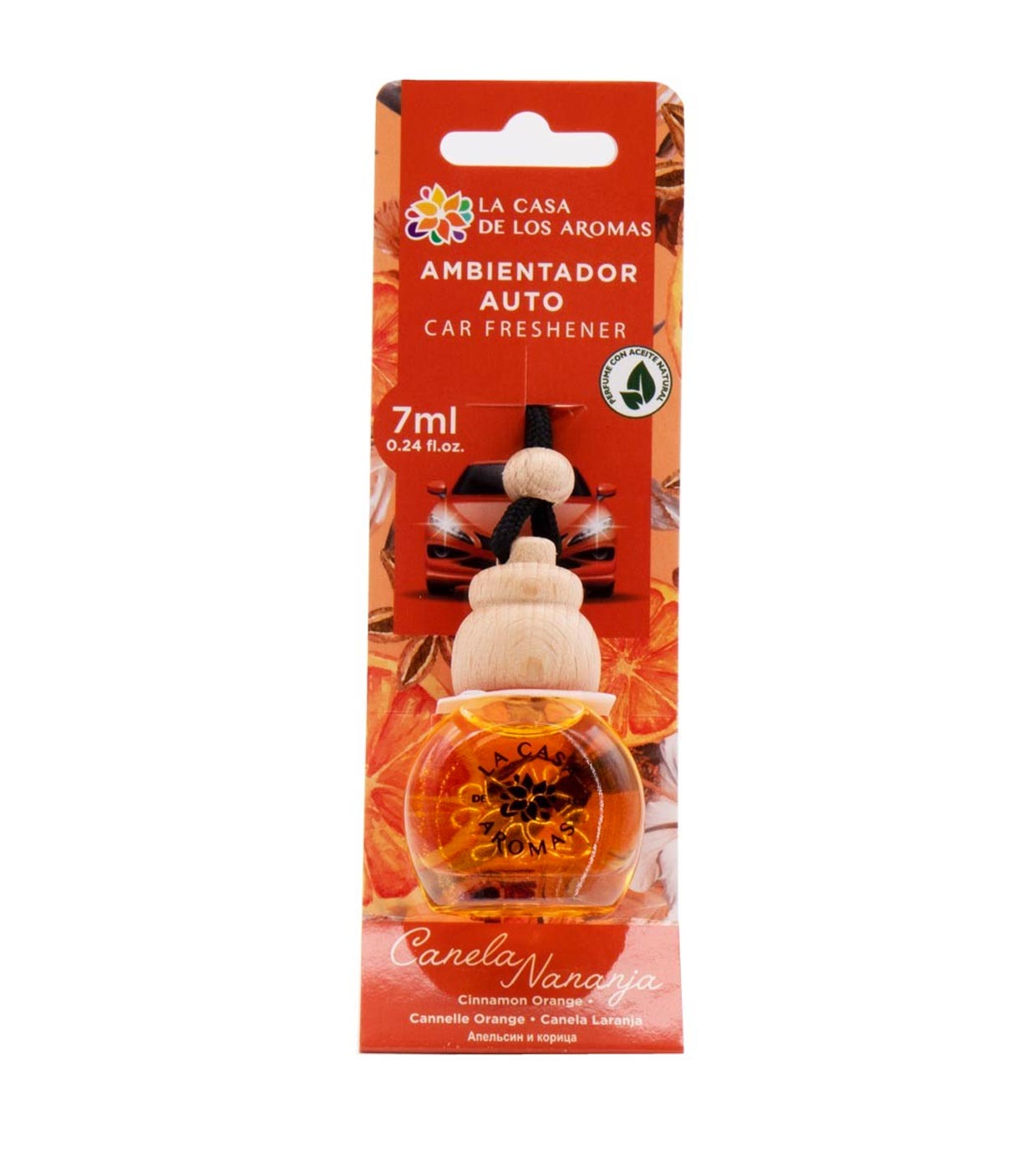 New car hanger freshener with aroma of orange cinnamon, sweet and spicy, sparkling and warm. Give your journeys a very cozy touch!