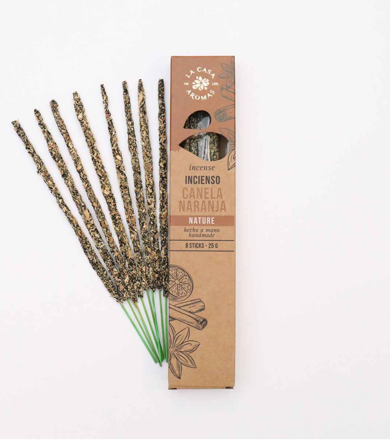 Let yourself be enveloped in a warm and spicy whirlwind, where the intensity of cinnamon merges with the sparkling freshness of orange with this Cinnamon Orange incense from La Casa de los Aromas .
