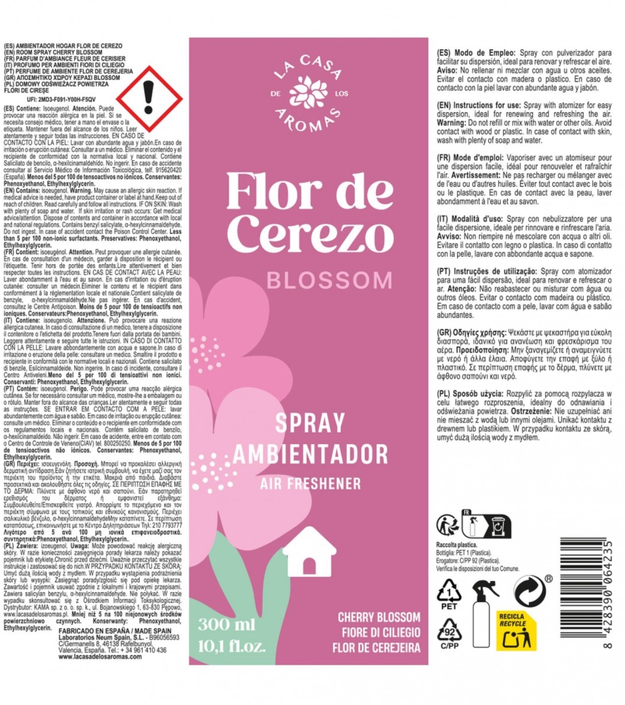 Renew the air in your home with the Flor de Cerezo spray air freshener from La Casa de los Aromas , the perfect touch to transform any room into a fresh, welcoming and harmonious space.