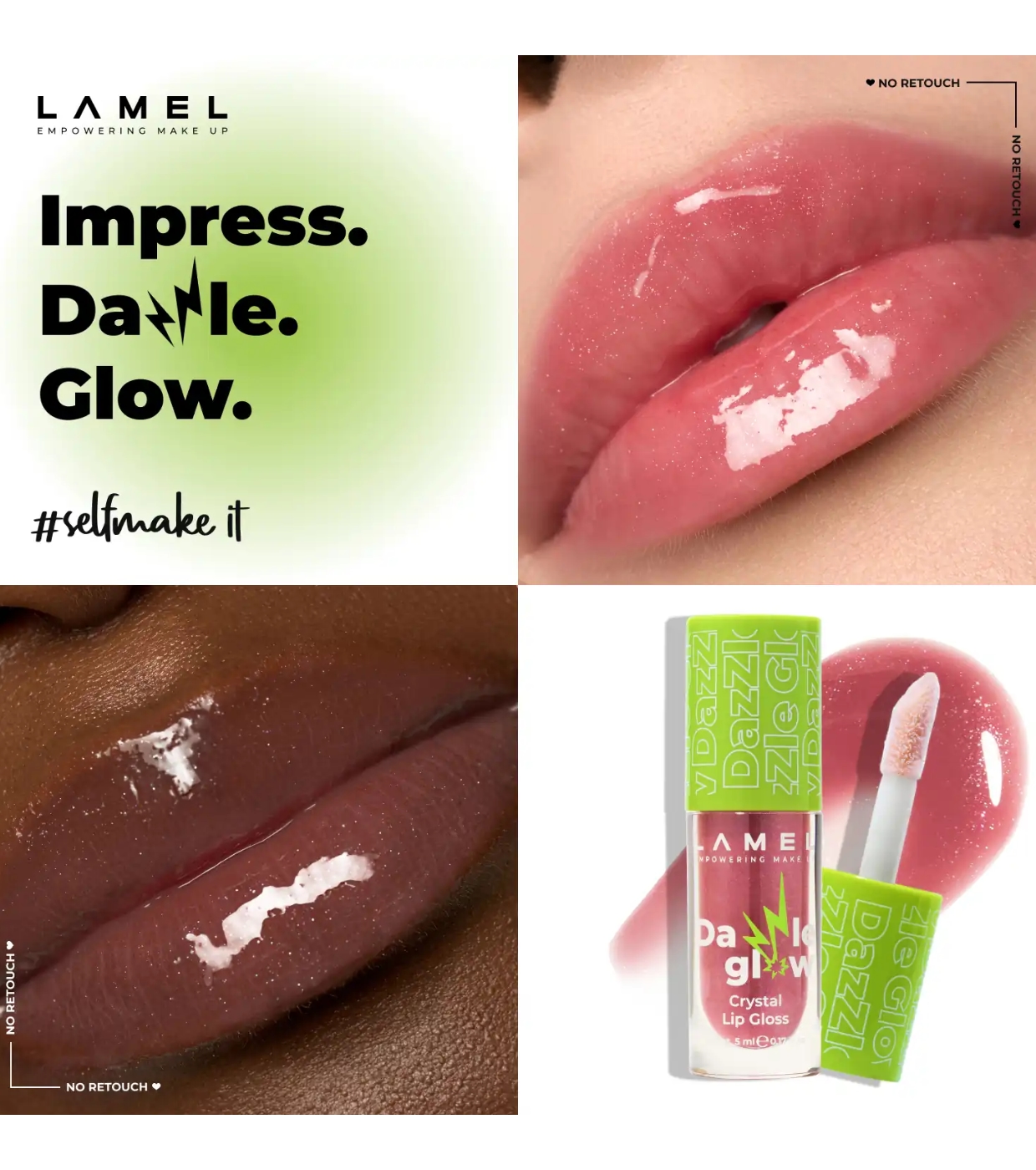 Get ready for irresistible lips with Dazzle Glow Crystal Lip Gloss's Lamel , a lip gloss that instantly elevates any look.