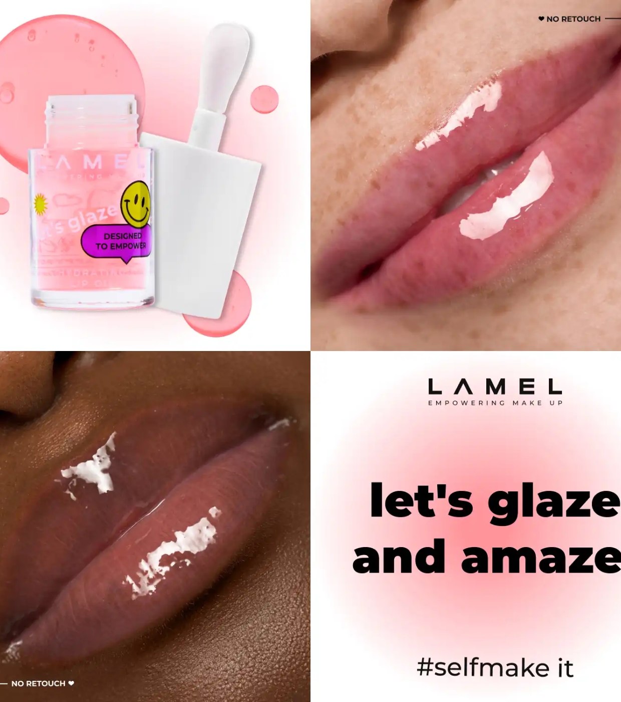 Give your lips an irresistible touch with Let’s Glaze Lamel lip oil , designed to provide deep hydration, radiant shine and a semi-sheer color that enhances your natural beauty.