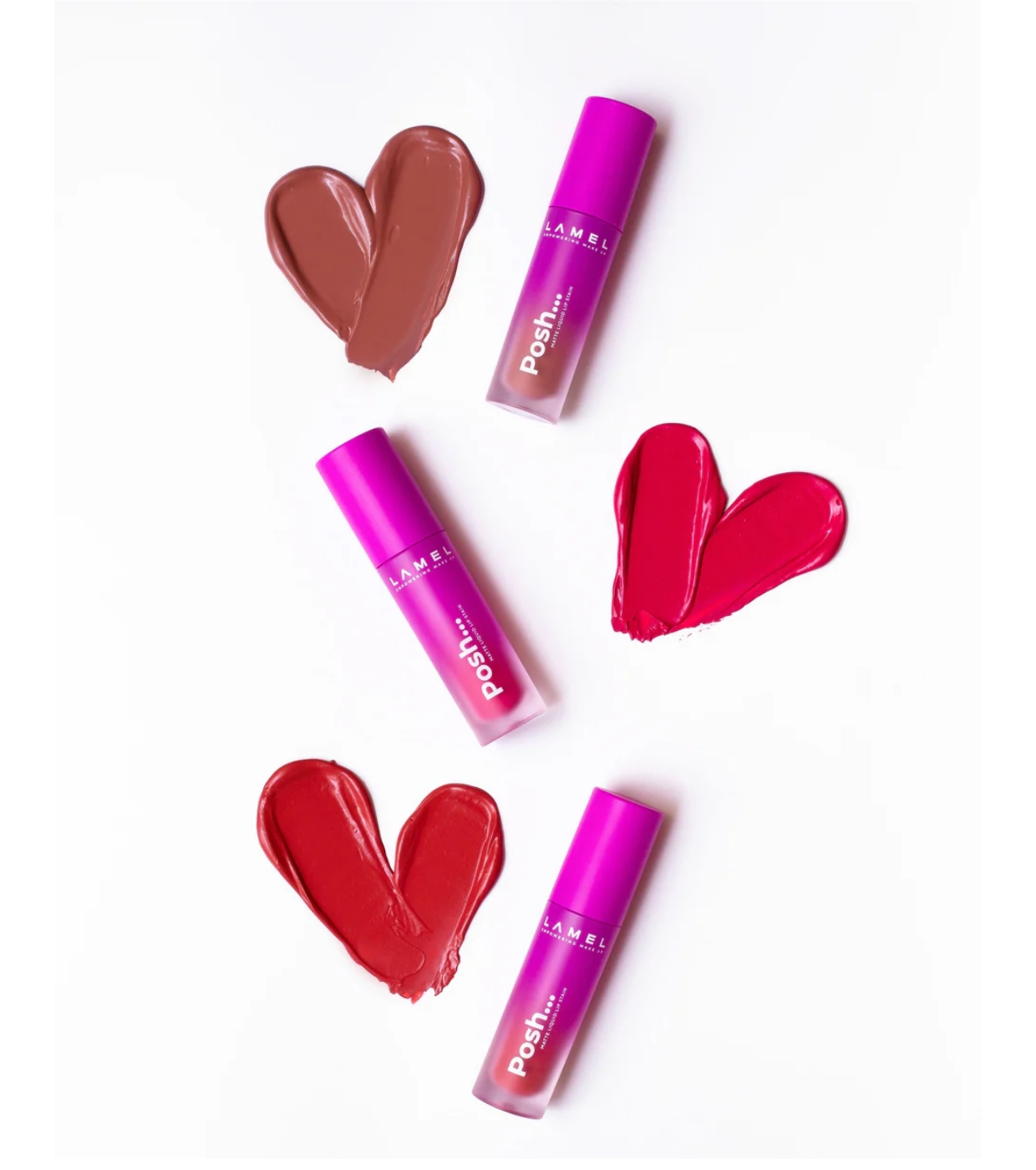 Discover the perfect balance between intense color and comfort with this matte liquid lipstick Posh Matte from Lamel .