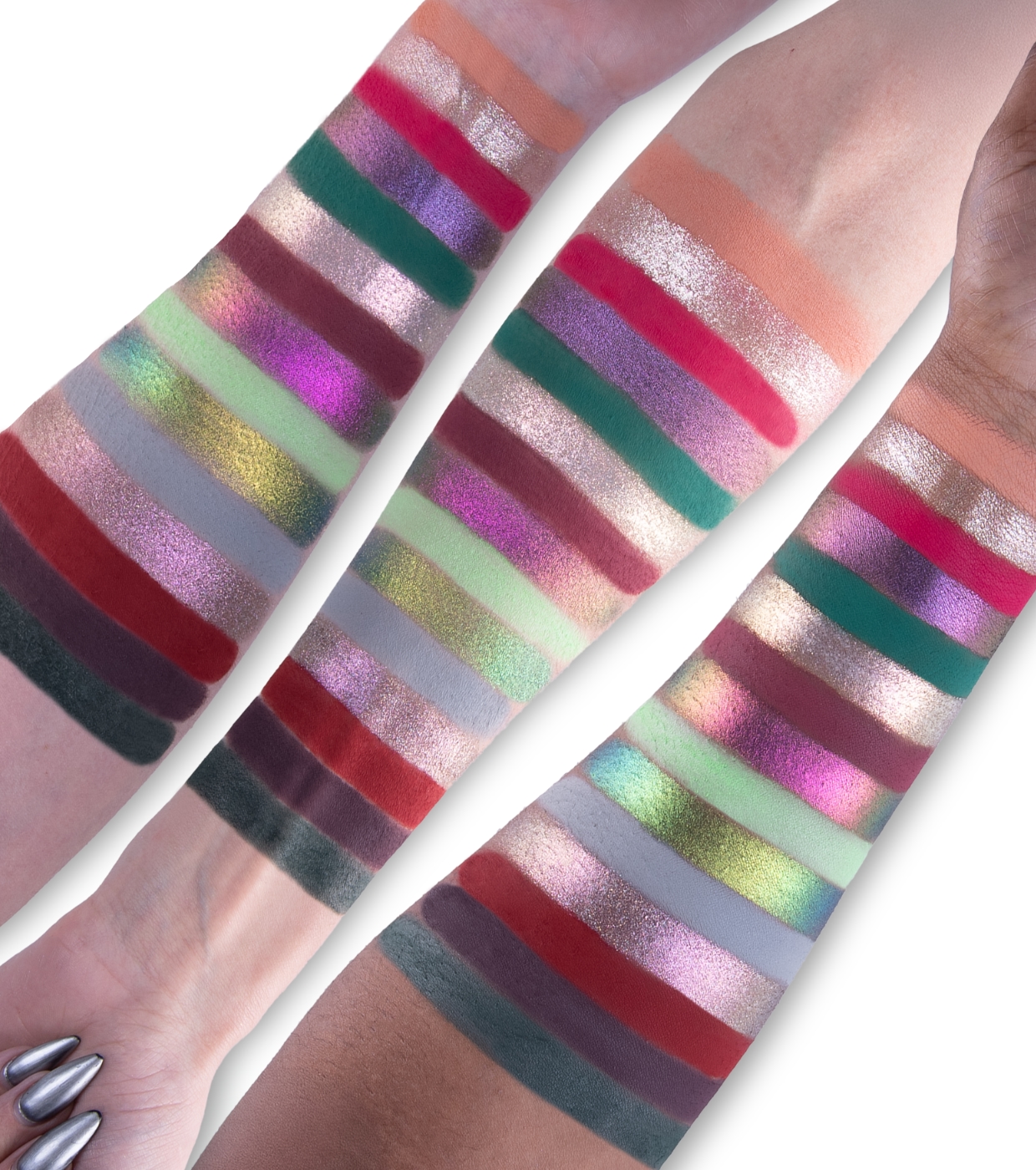 Inspired by cold-blooded, dangerous, magnetic, and strikingly beautiful creatures, this palette combines vibrant, deep tones with finishes that catch the light like scales in the sun.