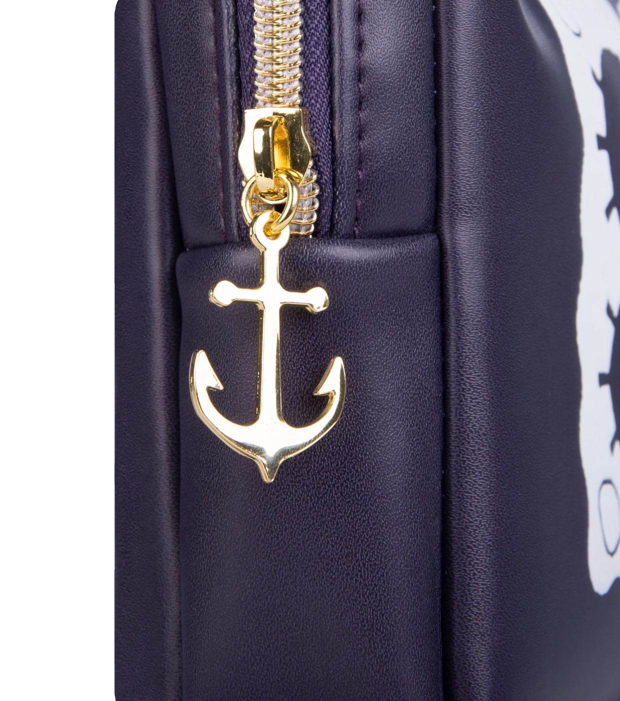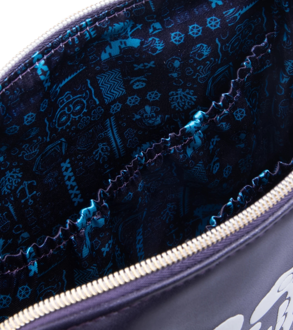 The gold anchor-shaped zipper pull adds a nautical touch, while the blue satin lining with a SpongeBob-themed print keeps your makeup organized in authentic underwater style.