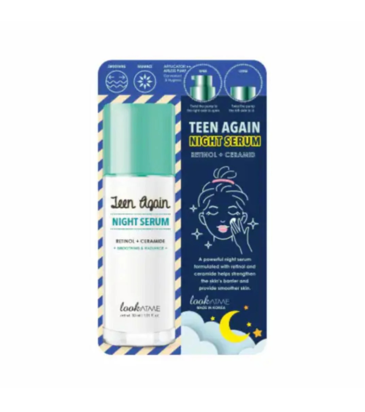 Wake up to renewed, glowing skin! This Teen Again Retinol & Ceramide Overnight Serum from Look At Me combines the benefits of retinol, ceramide, and niacinamide to transform your skin while you rest.